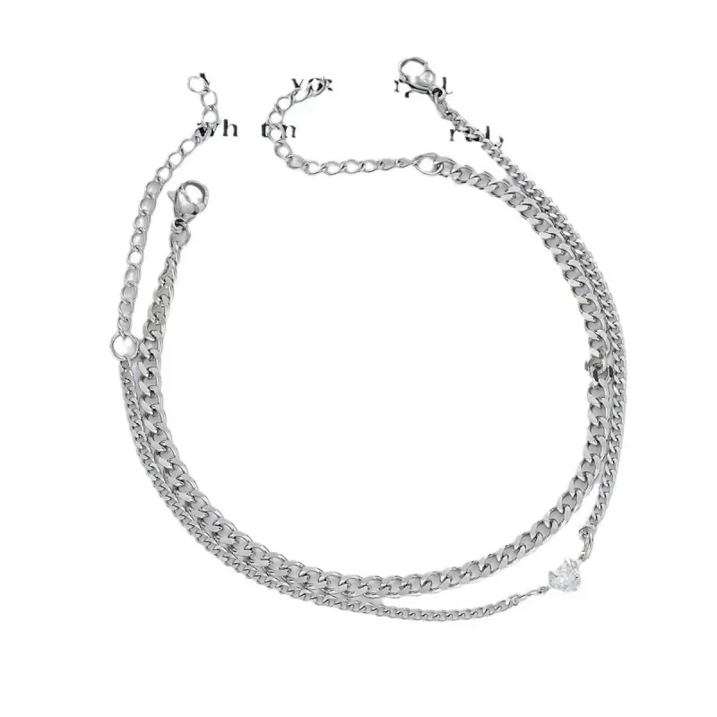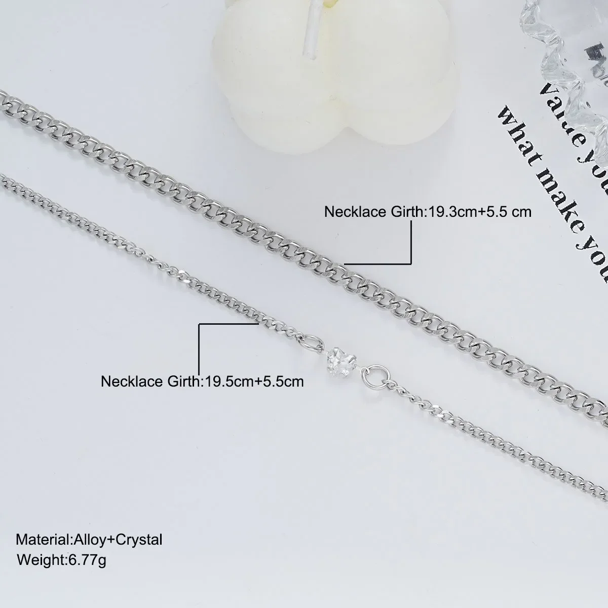 2PCS Simple Fashion Stainless Steel Bracelet Set for Couple Unisex Women Men Lover Crystal Heart Silvery Chain Bracelets Jewelry