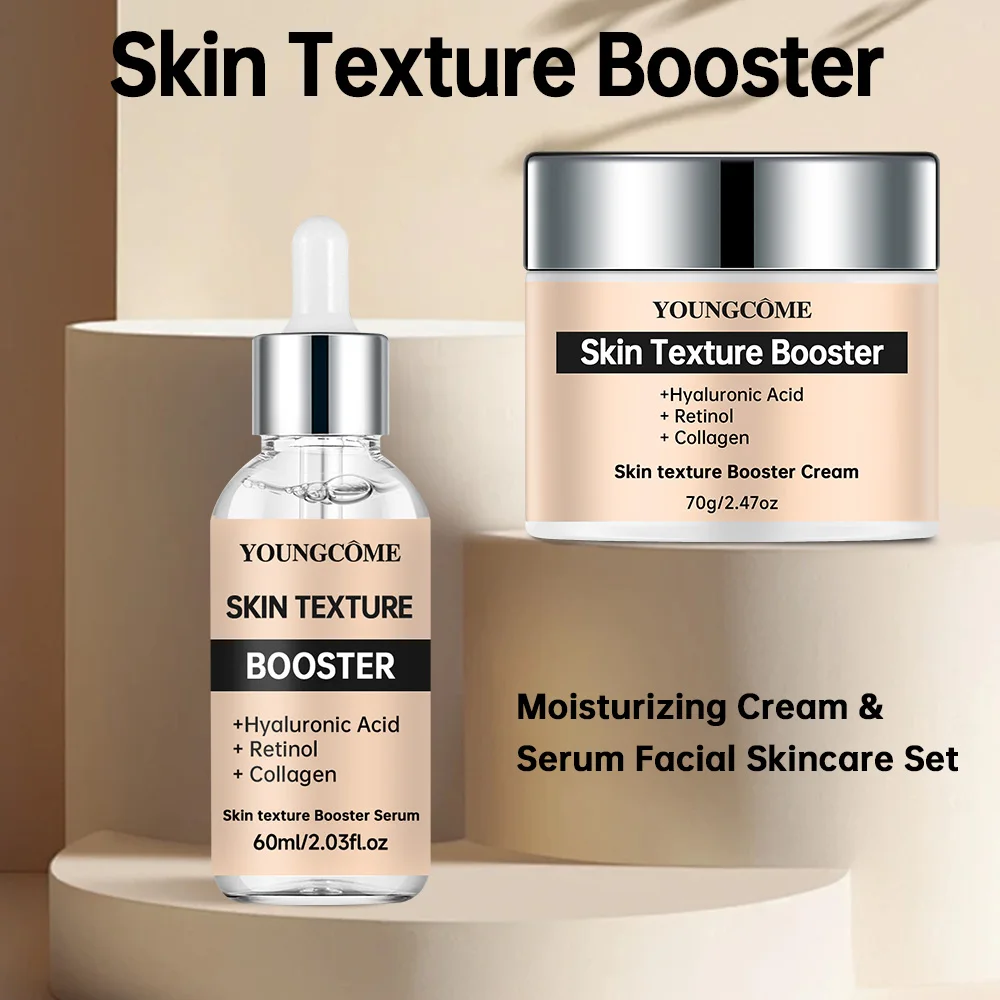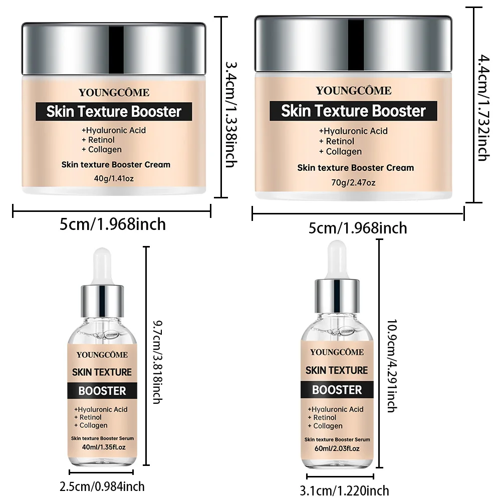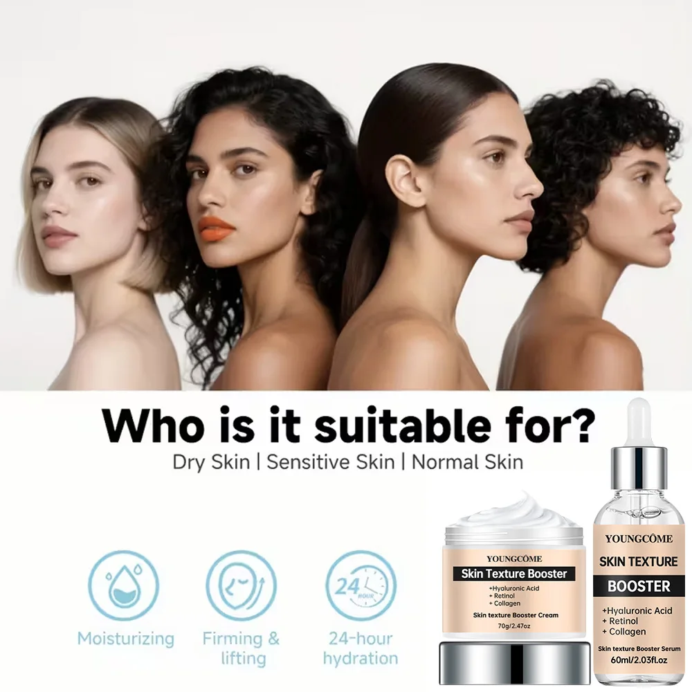 2PCS Skin Texture Booster Face cream&Essence Set– Deep Hydration, Hyaluronic Acid, Collagen & Retinol, Lightweight & Non-Sticky