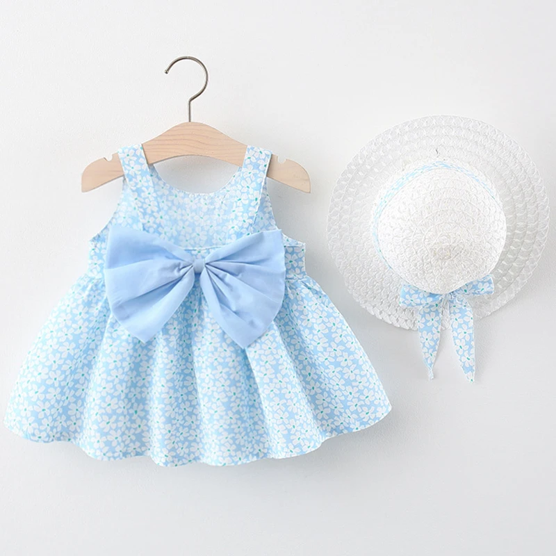 2Piece Summer Newborn Dresses Toddler Clothes Korean Cute Bow Flowers Beach Infant Princess Dress Baby Girl Clothing Set BC252