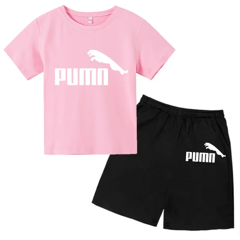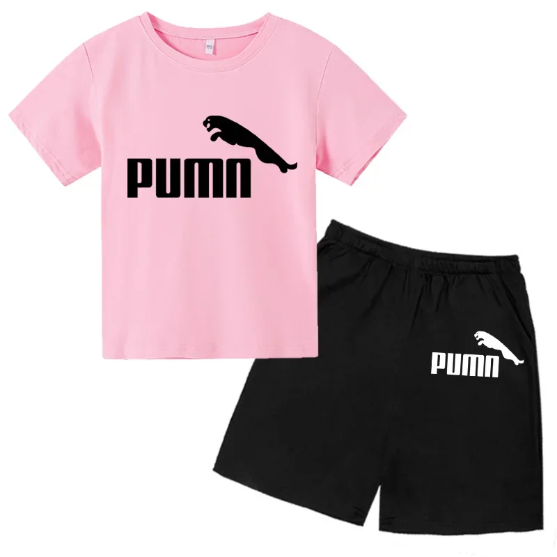 Summer 2Pcs Children T-shirts Suits 2-12 Years Boys Girl Casual Tops Short Sleeve Cotton Clothes Sets Printing