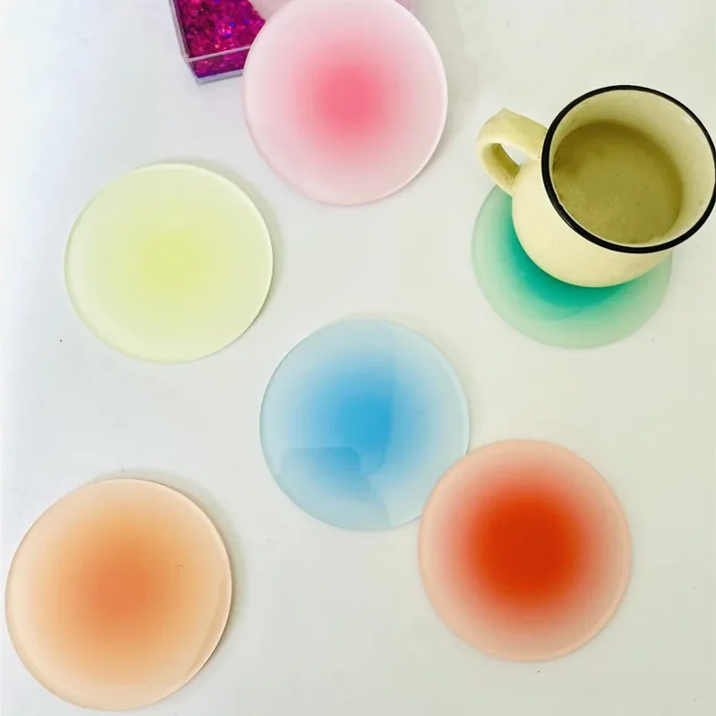 3/6pcs Ins Colour Gradient Acrylic Coaster Anti-slip Round Cup Pad Dining Table Placemat Cafe Decor Mug Mats Coaster Set