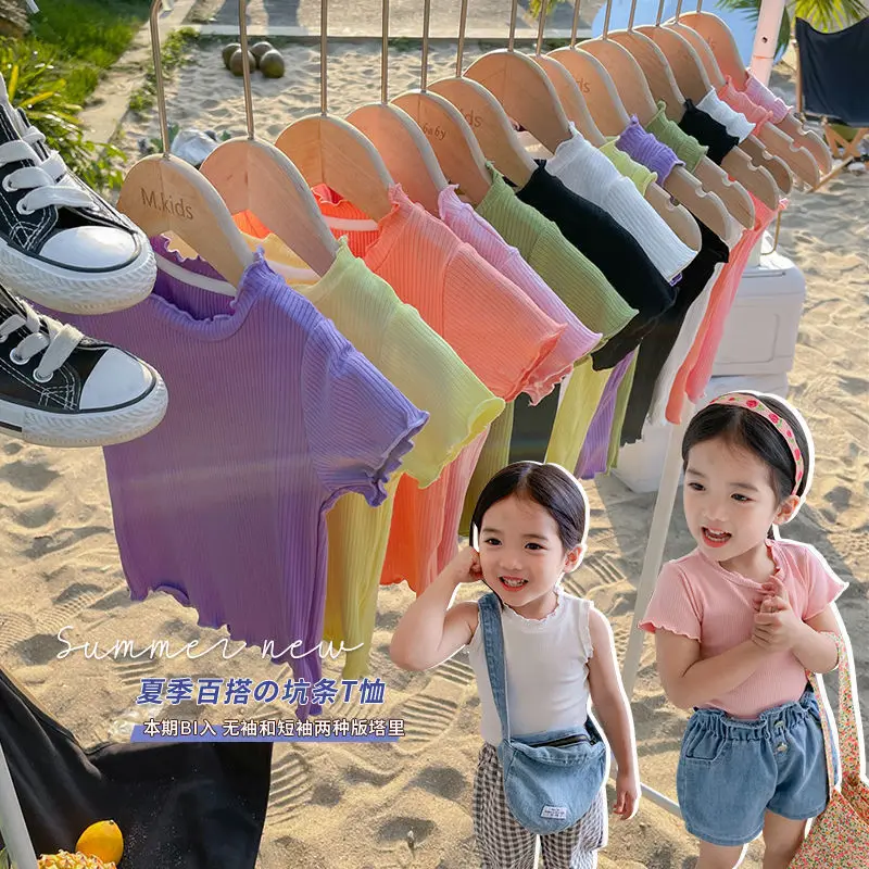 3-7 Years Children Summer Ice Silk T-Shirt Girls Short Sleeve Round Collar Soft Tops