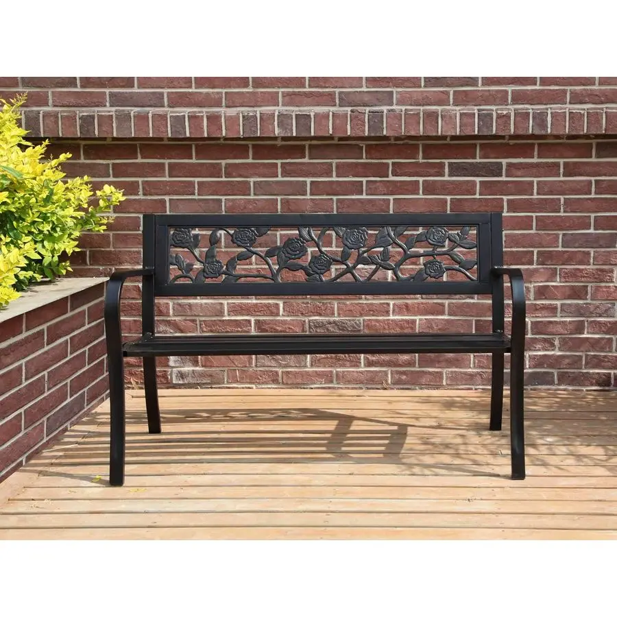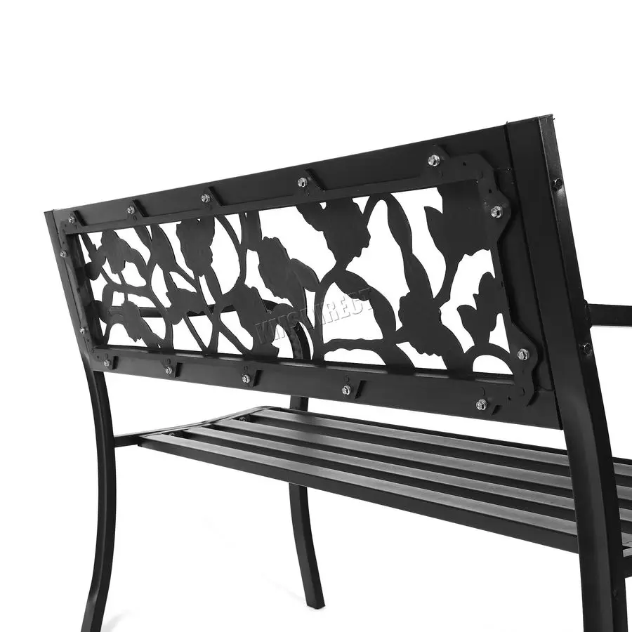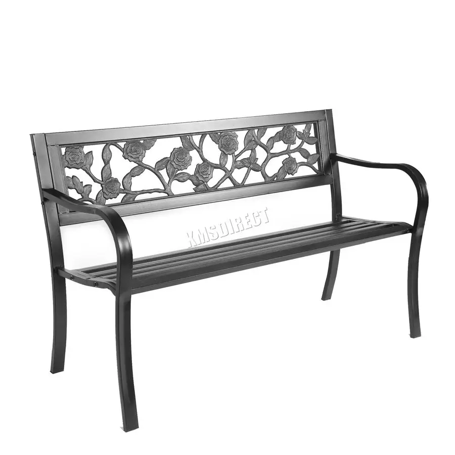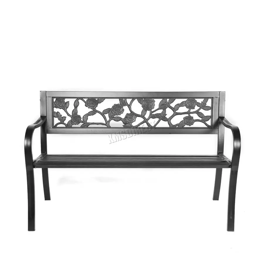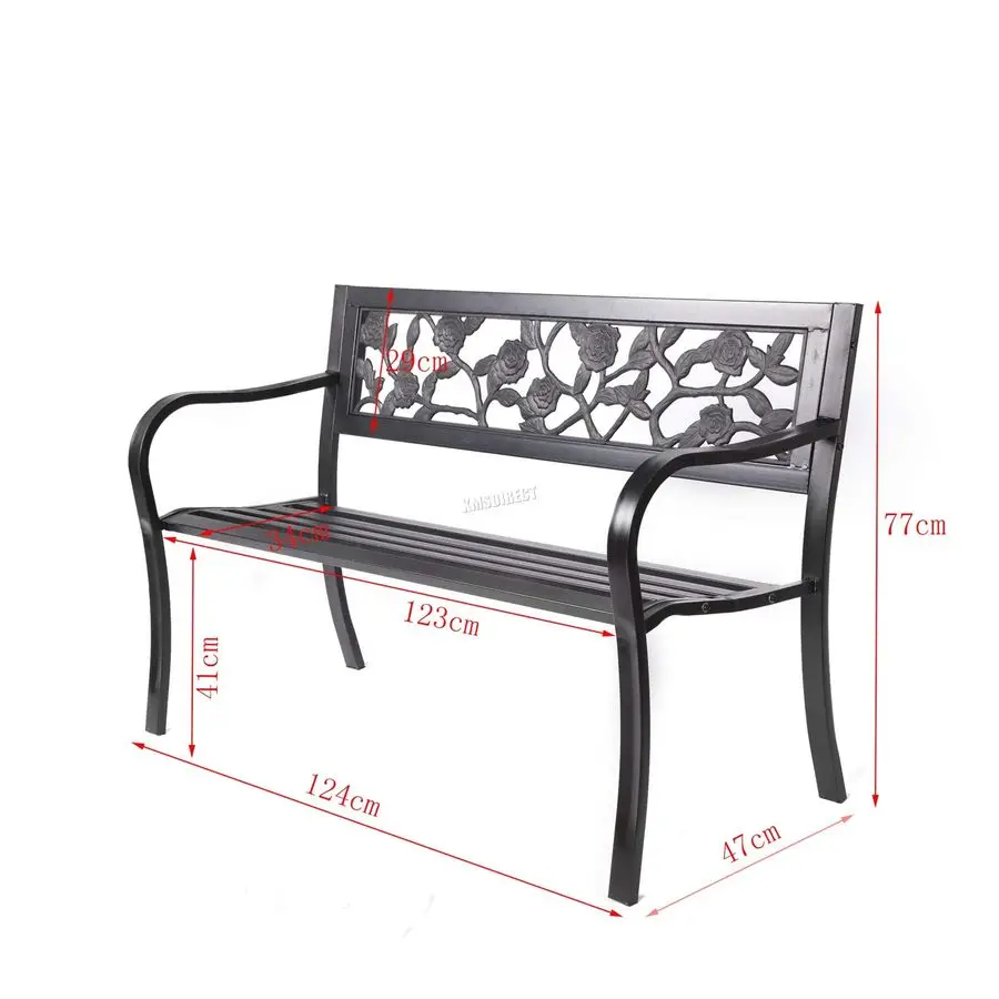 3 Seater Garden Bench Slat Steel Rose Style Park Patio Outdoor Furniture Seat Chair Metal C074 Black
