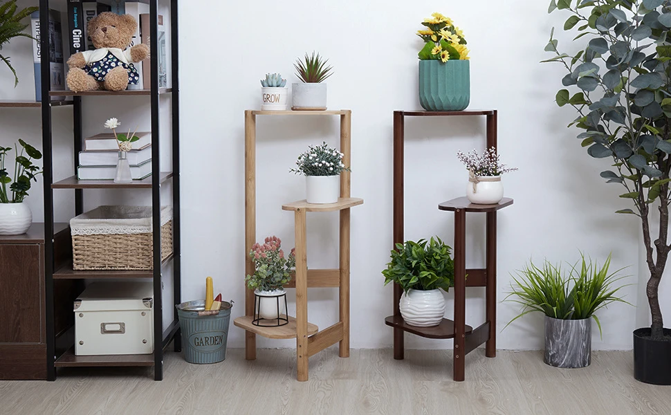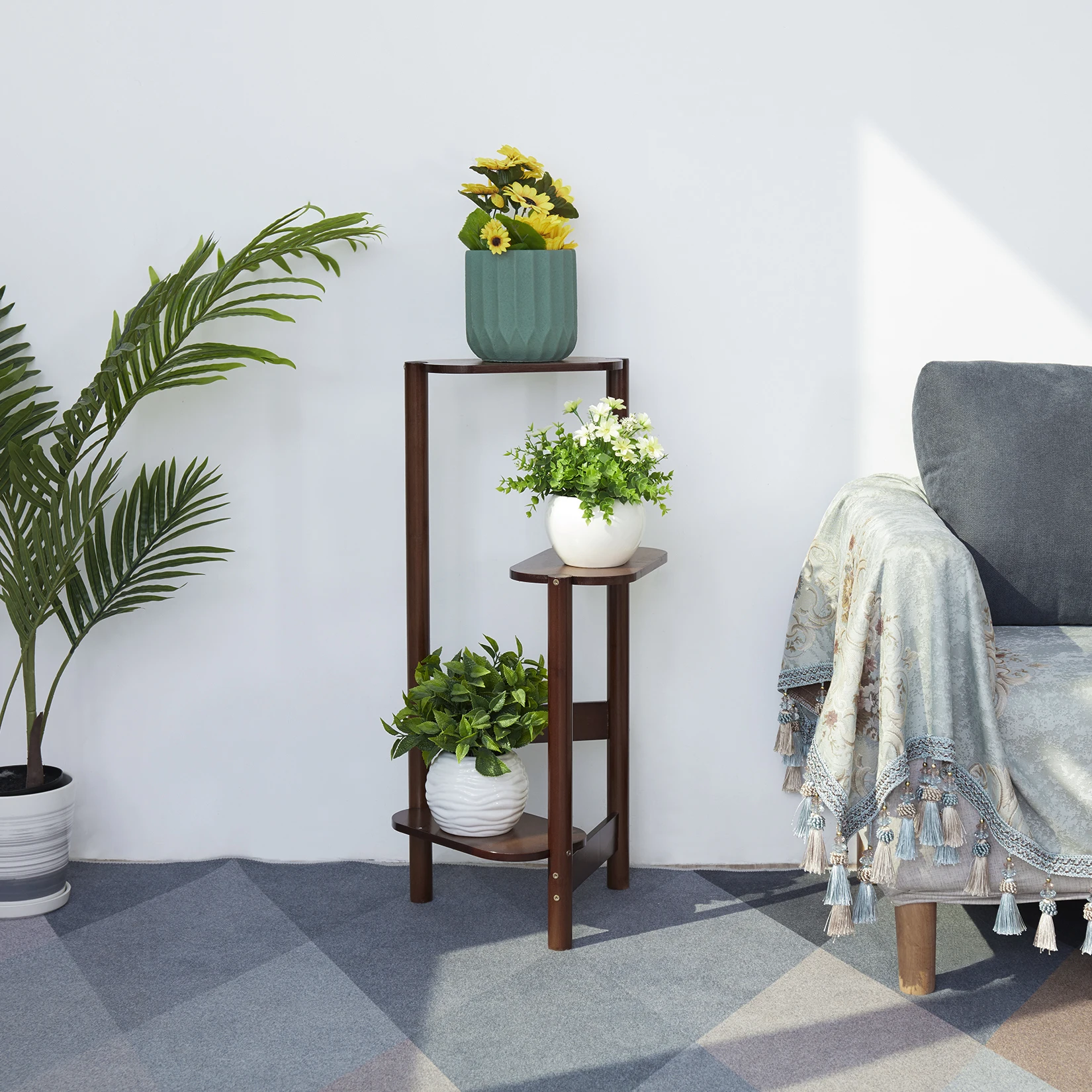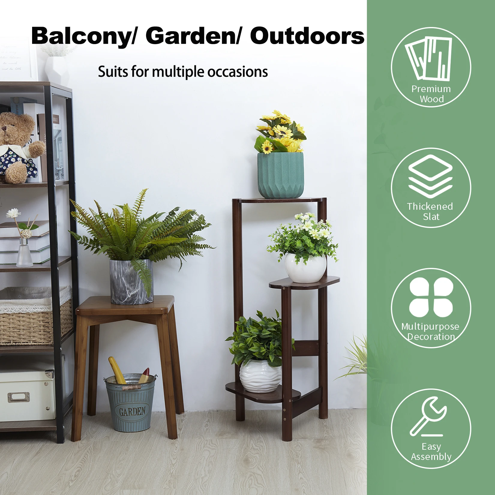 3 Tier Bamboo Tall Corner Plant Rack Planter Stand Flower Pot Holder Storage Rack for Balcony Garden