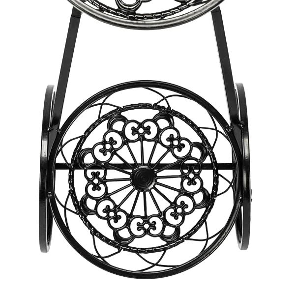 • European style bicycle shape stand boasts decorative (non-rolling) wheels.