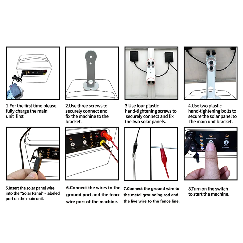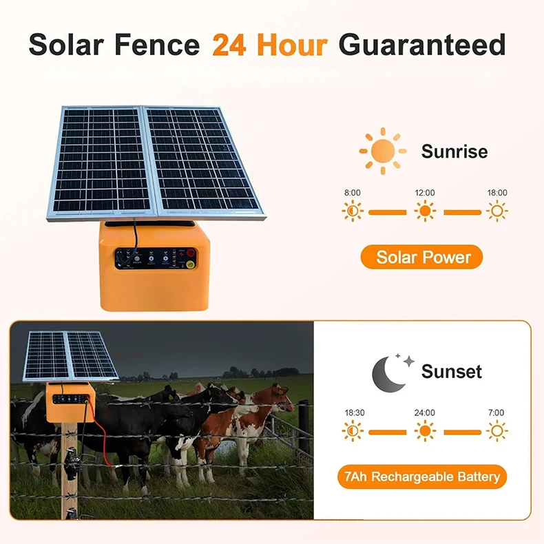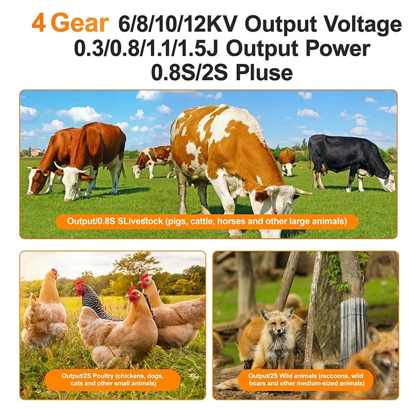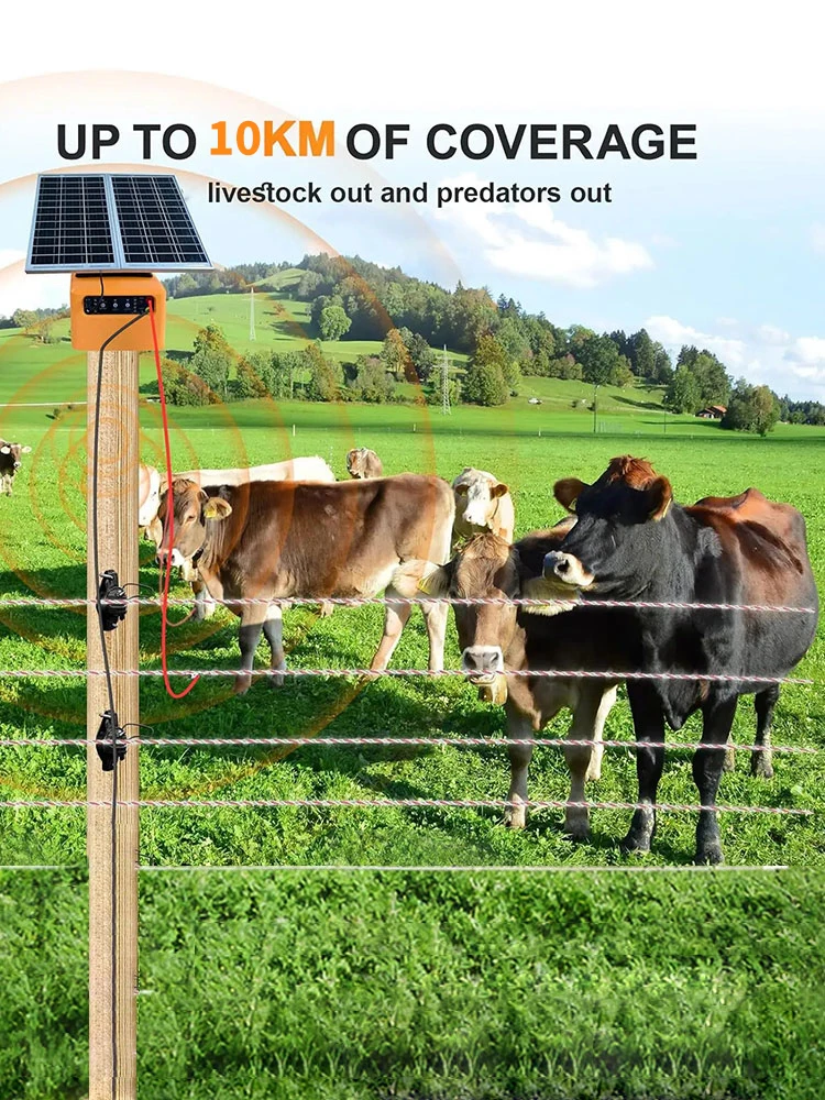 30 Miles Solar Electric Fence Charger Adjustable 1.5 J 4 Gear 6/8/10/12KV for Animal Farm Livestock Prevent Predator Invasion