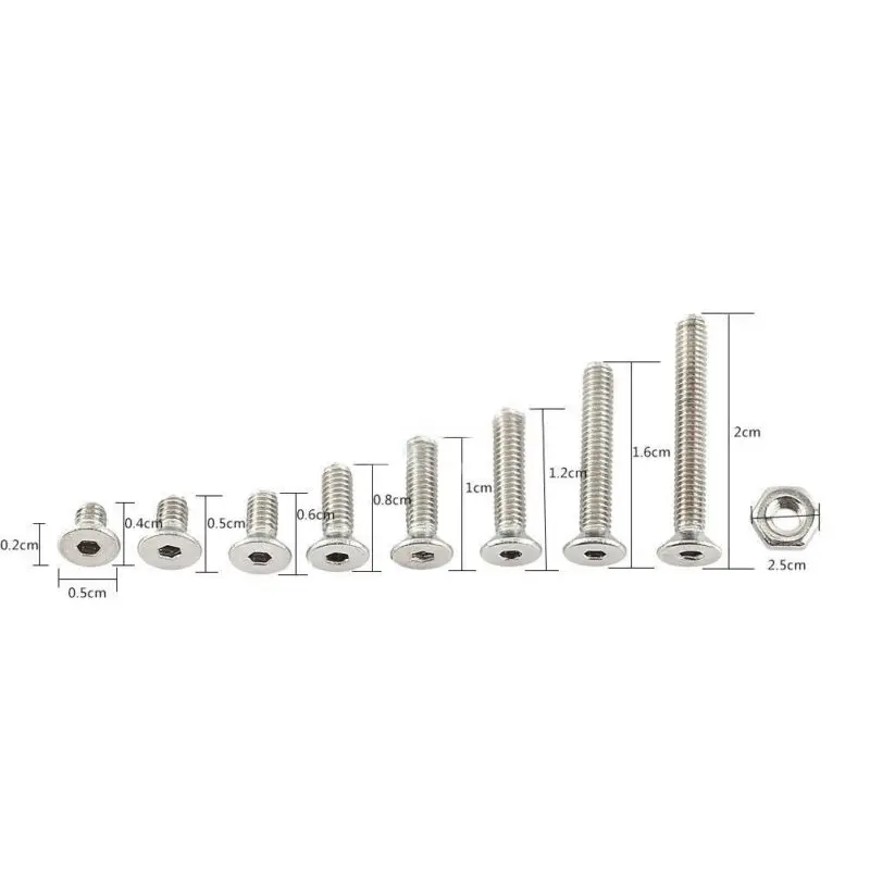 These bolts and nuts are made of stainless steel which is resistant to rust and corrosion. there are many length in a set that can be commonly used in home appliances and office supplies, machinery, furniture, repair and DIY inventions.