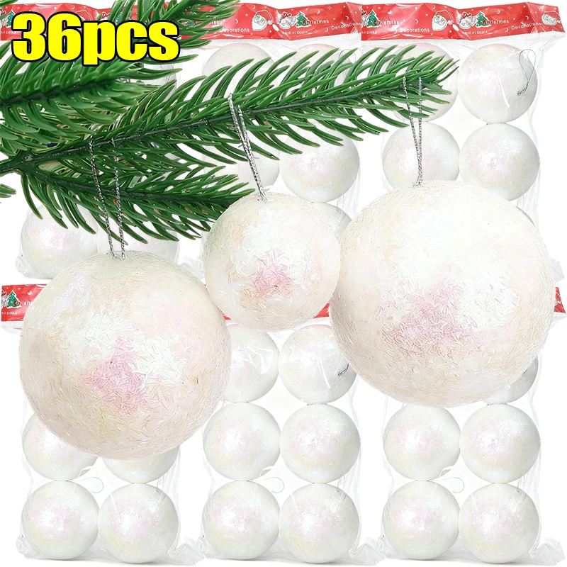 36/6pcs White Xmas Tree Round Ball Hanging Pendants Foam Christmas Balls for Home New Year Navidad Party Decoration Wholesale