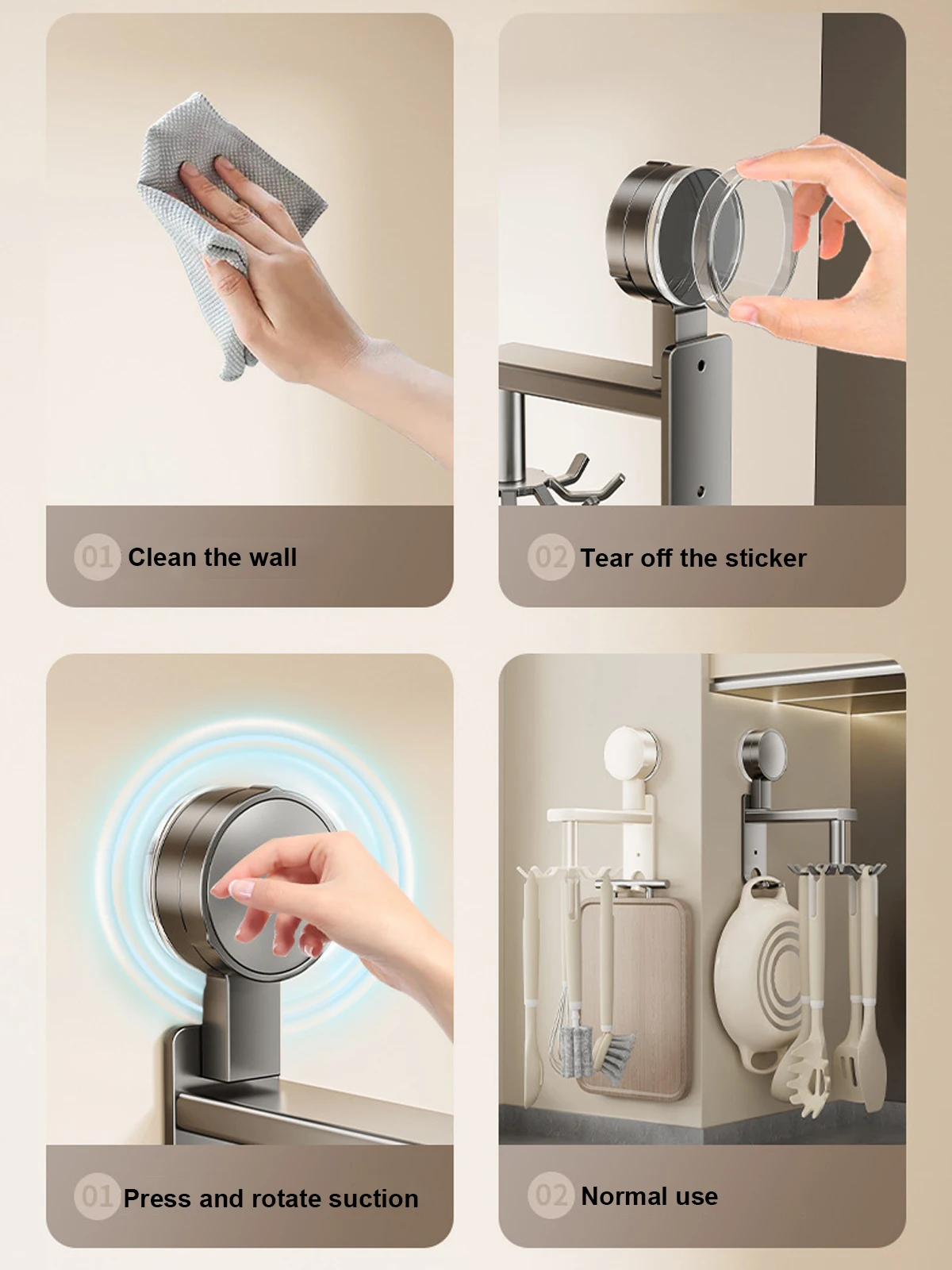 3 reviews for 360° Swivel Wall Hangers Kitchen 10 Piece Hooks Rack No-Punching Kitchen Utensils Shovel Chopping Board Storage Stainless Steel