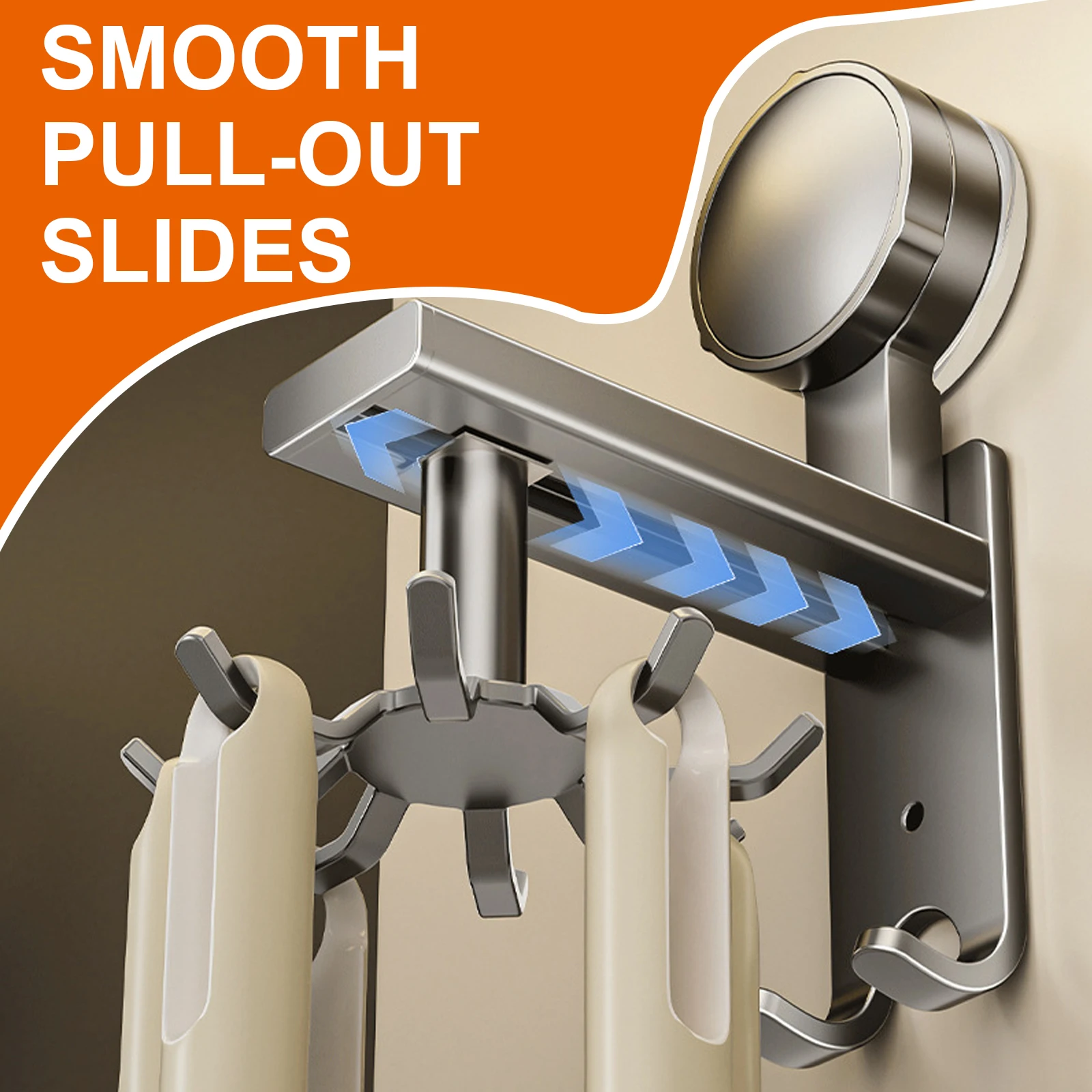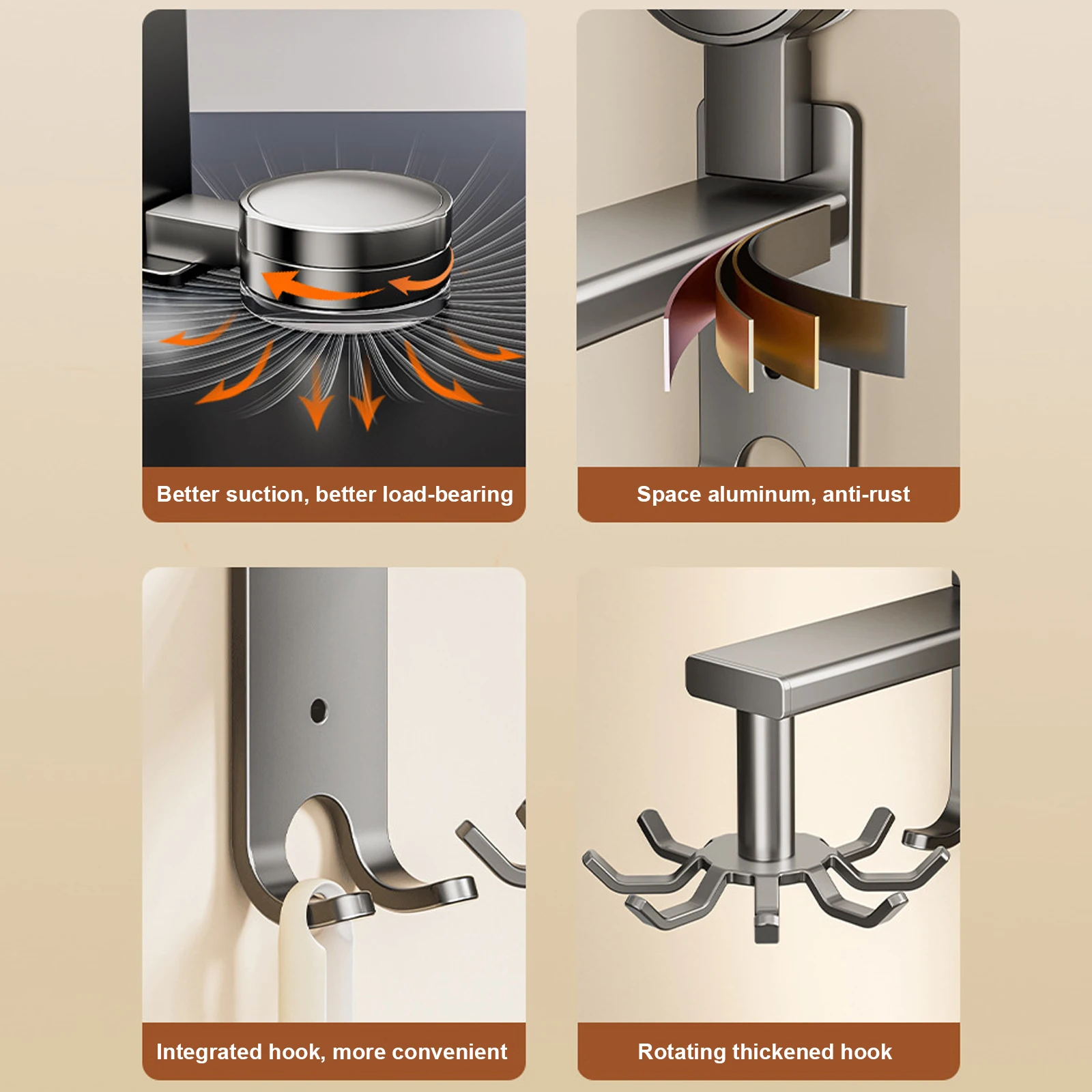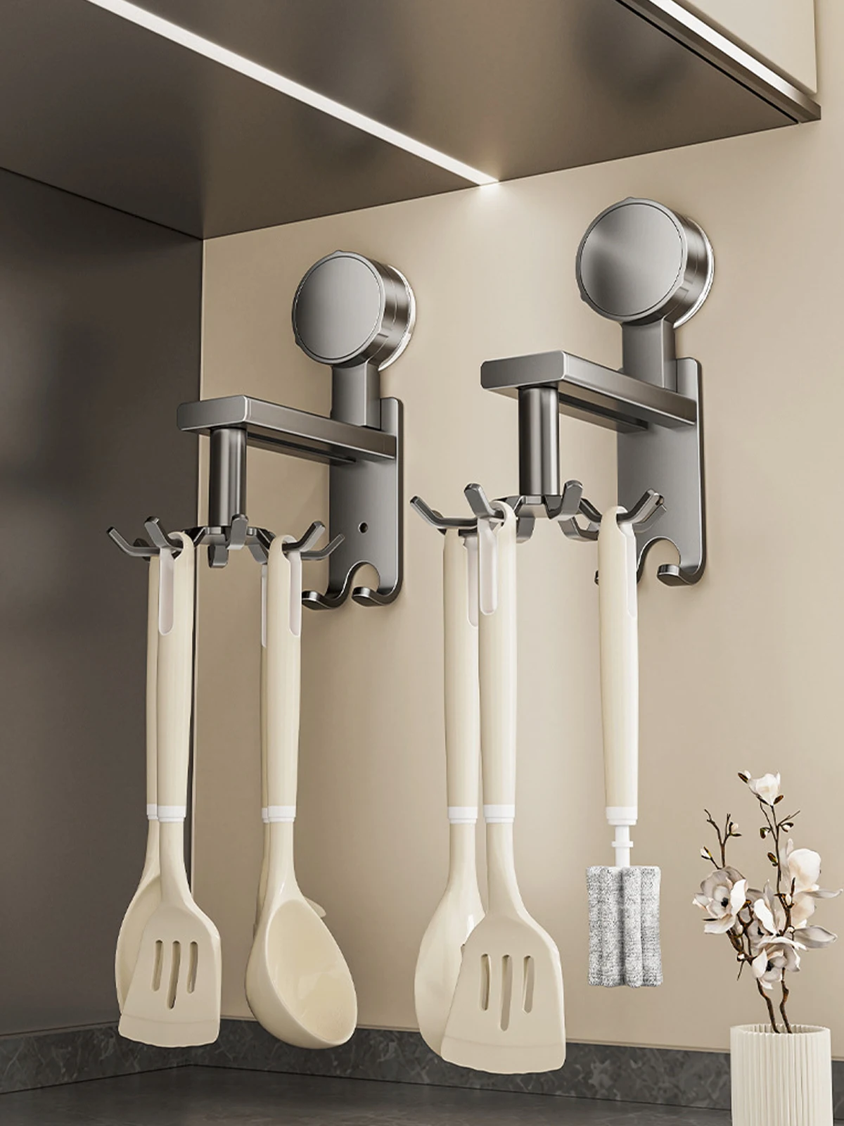 360° Swivel Wall Hangers Kitchen 10 Piece Hooks Rack No-Punching Kitchen Utensils Shovel Chopping Board Storage Stainless Steel