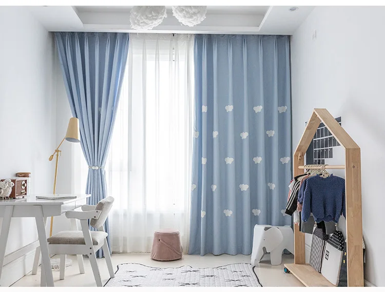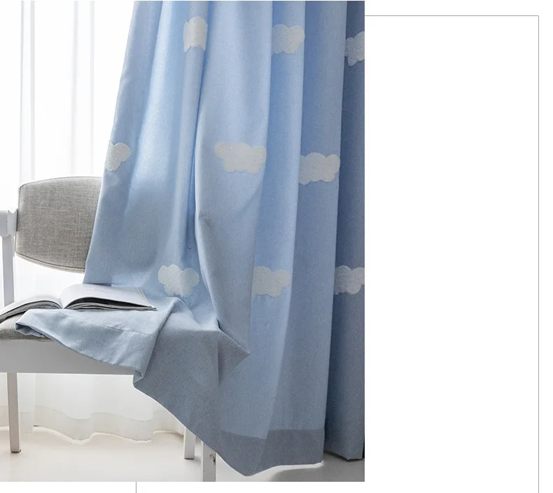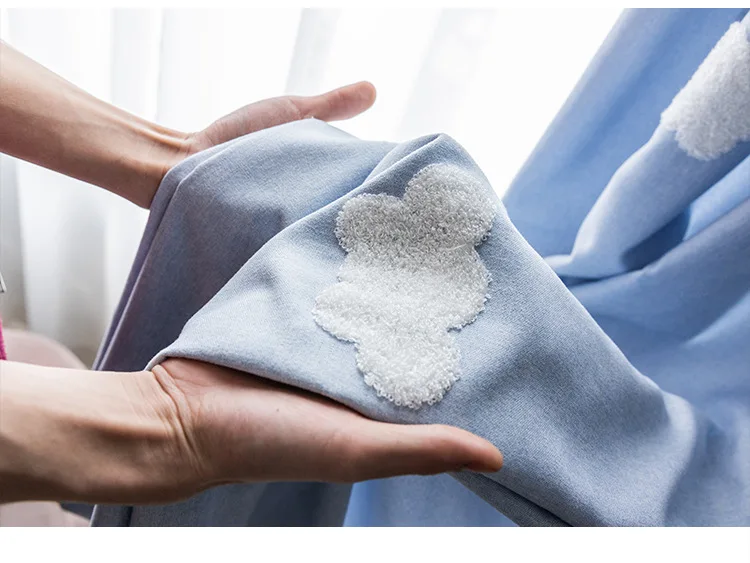 3D Cloud Embroidery Kids Curtains for Room Darkening, Thermal Insulated, Blackout Window Treatment,Grommet Top Window Curtains