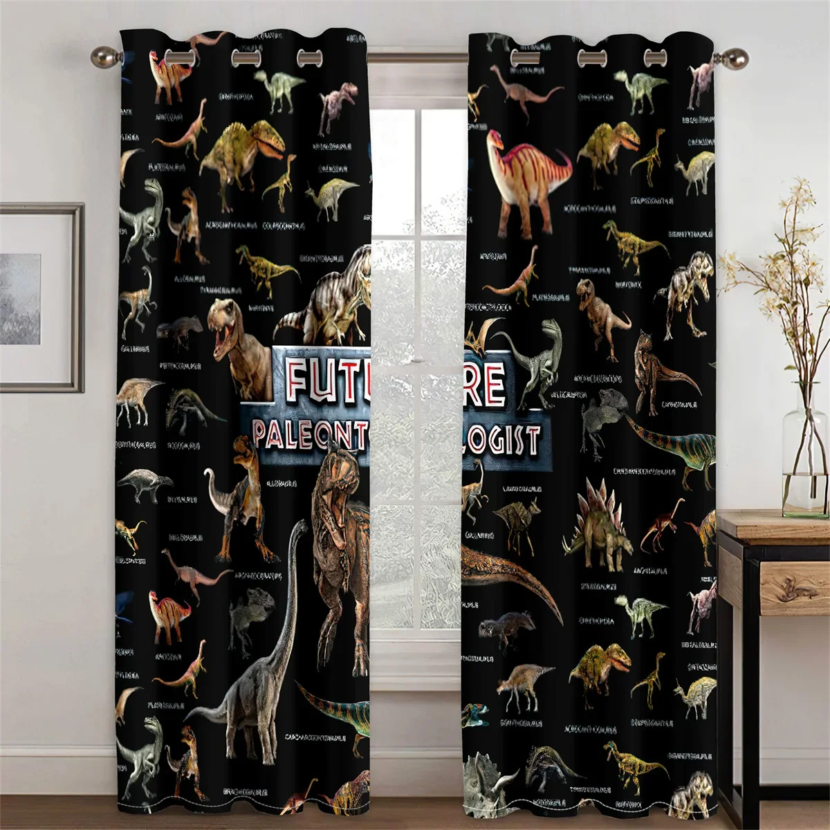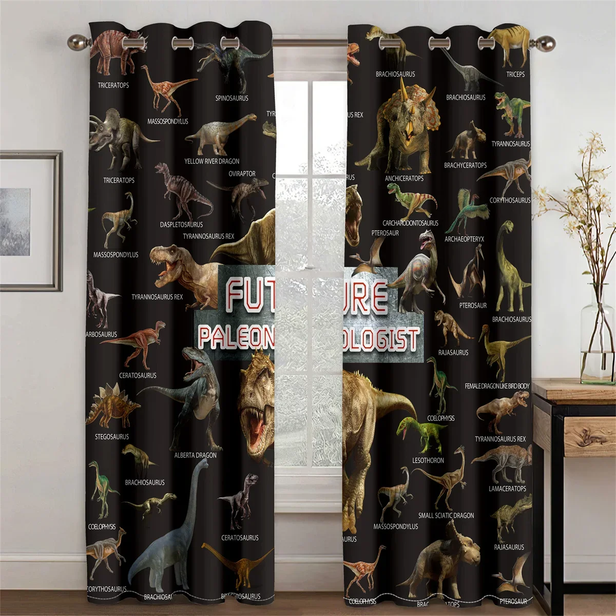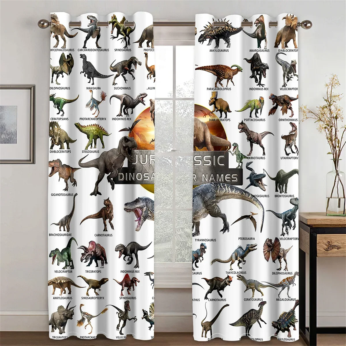 3d Encyclopedia of Dinosaur Names Funny Kids Boys Child Light Filtering Drapes Decor 2 Panels Curtains For Bedroom Living Room