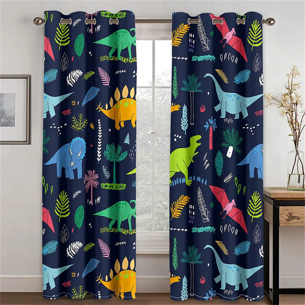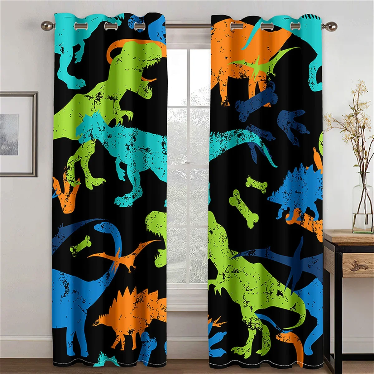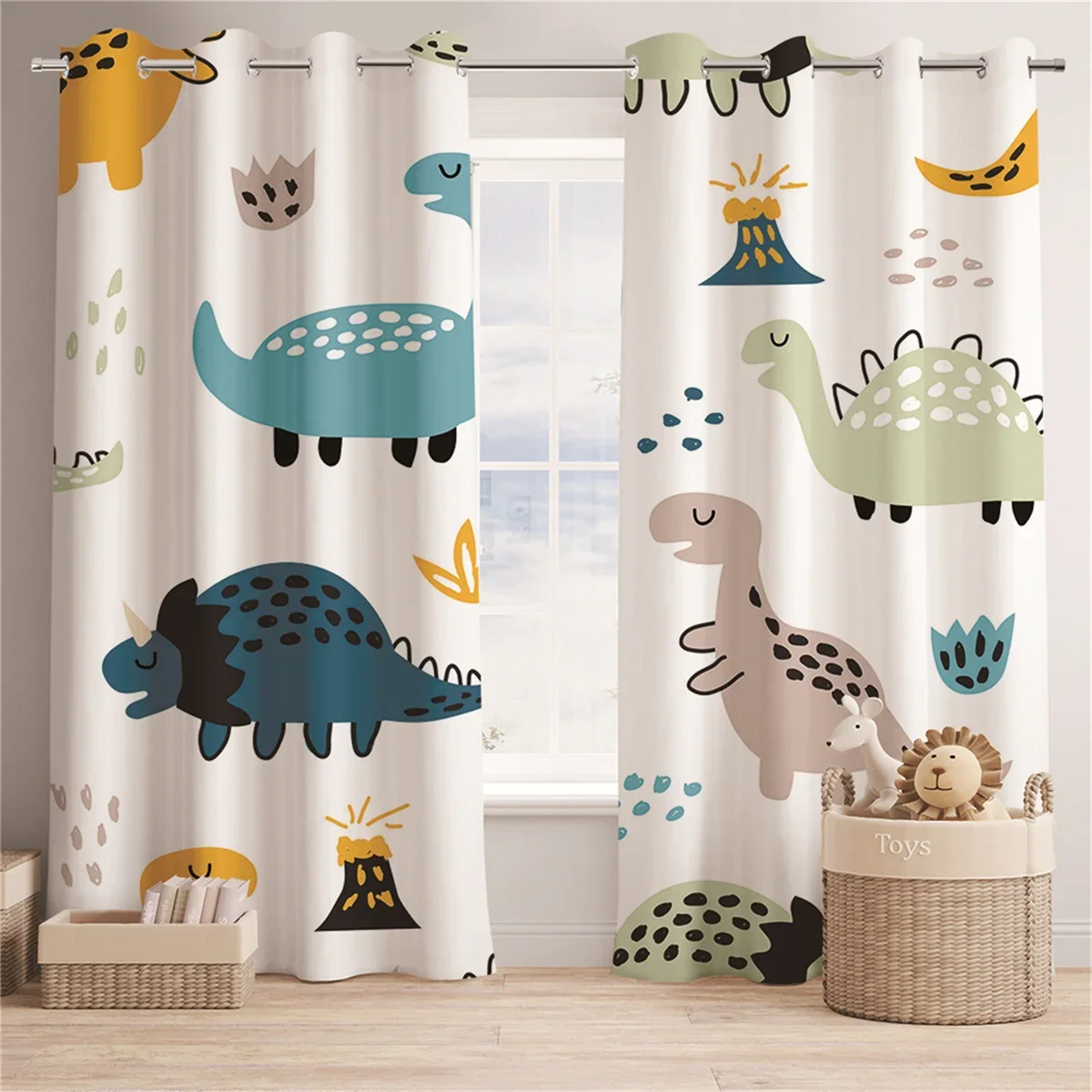 3d Encyclopedia of Dinosaur Names Funny Kids Boys Child Light Filtering Drapes Decor 2 Panels Curtains For Bedroom Living Room