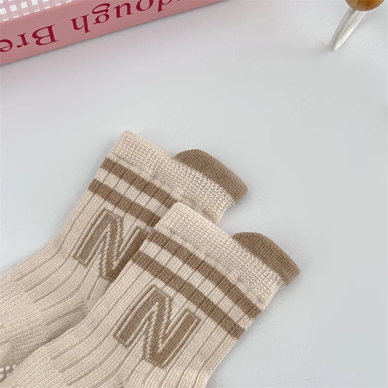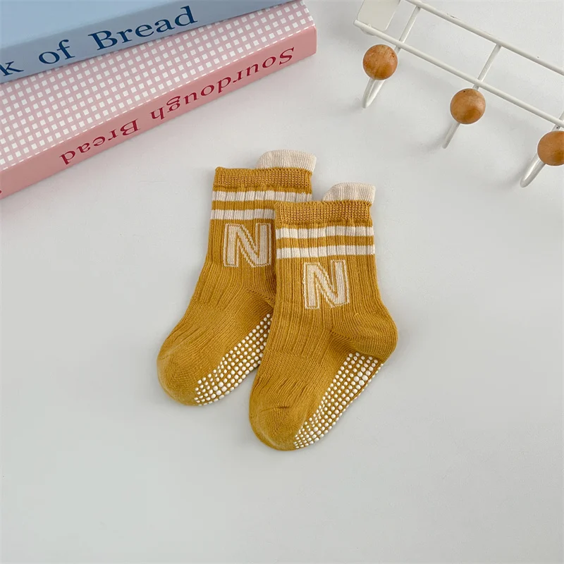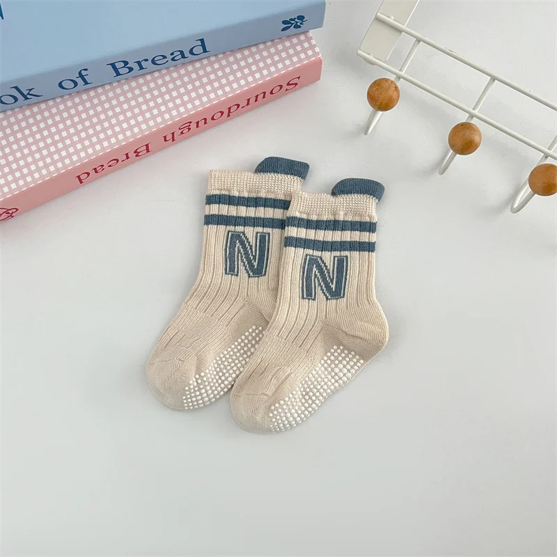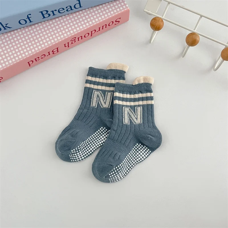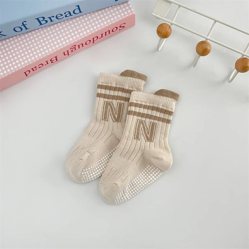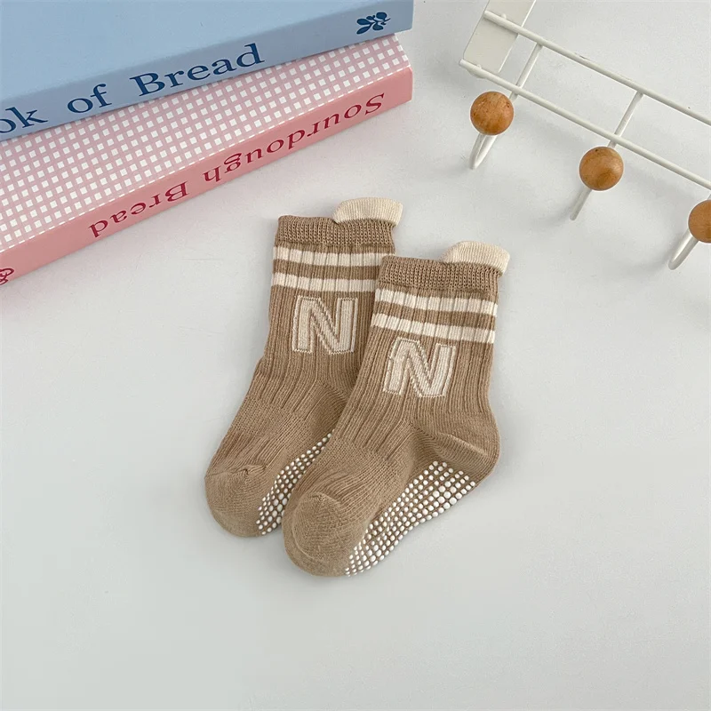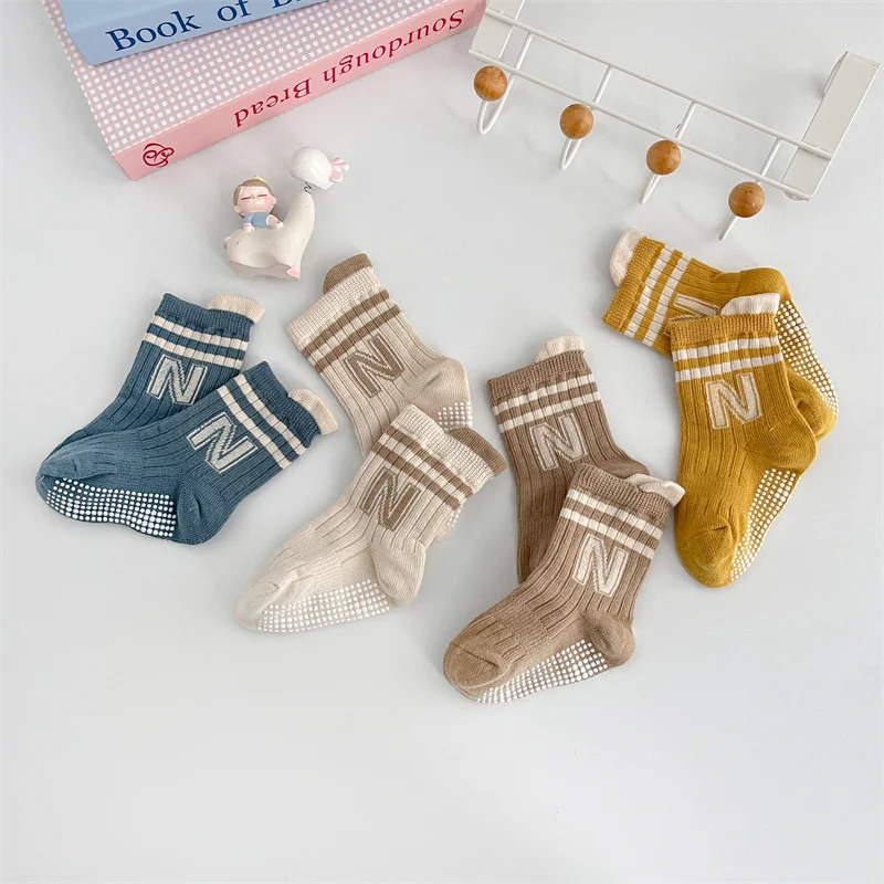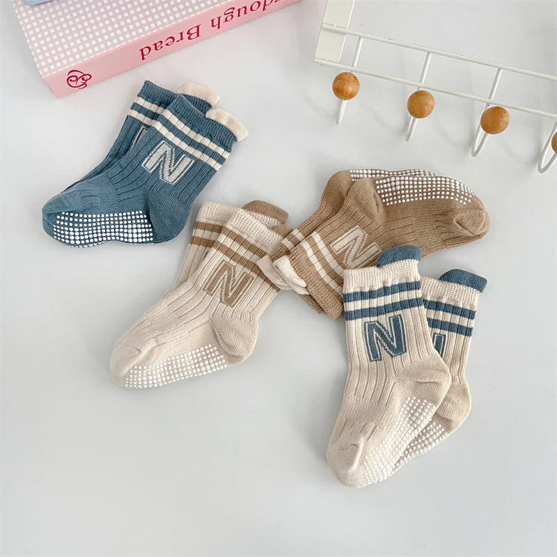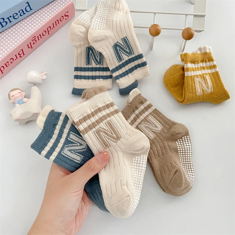 3Pairs/Lot Baby Letter Non-slip Socks Soft Cotton Short Kids Sock Infant Toddler Boys Girls Cute Stripe Socken For 0-5Years