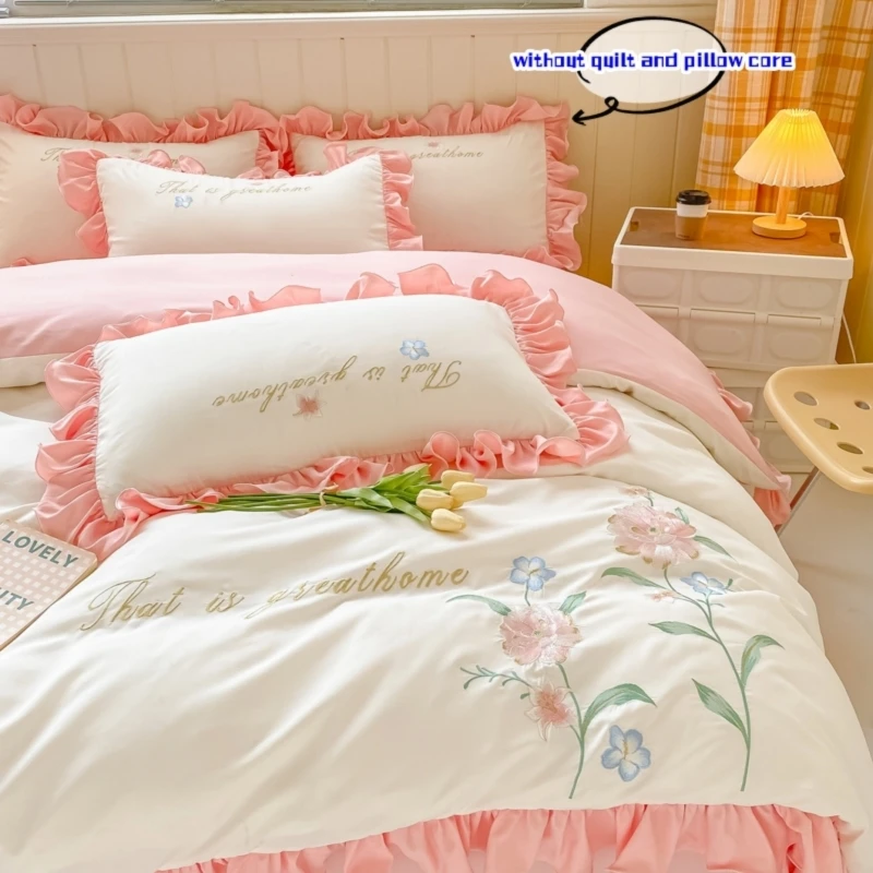 3pcs Elegant embroidery Duvet Cover Set pillowcase soft Bedding Set for bedroom guest room