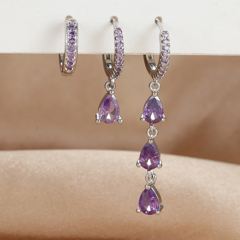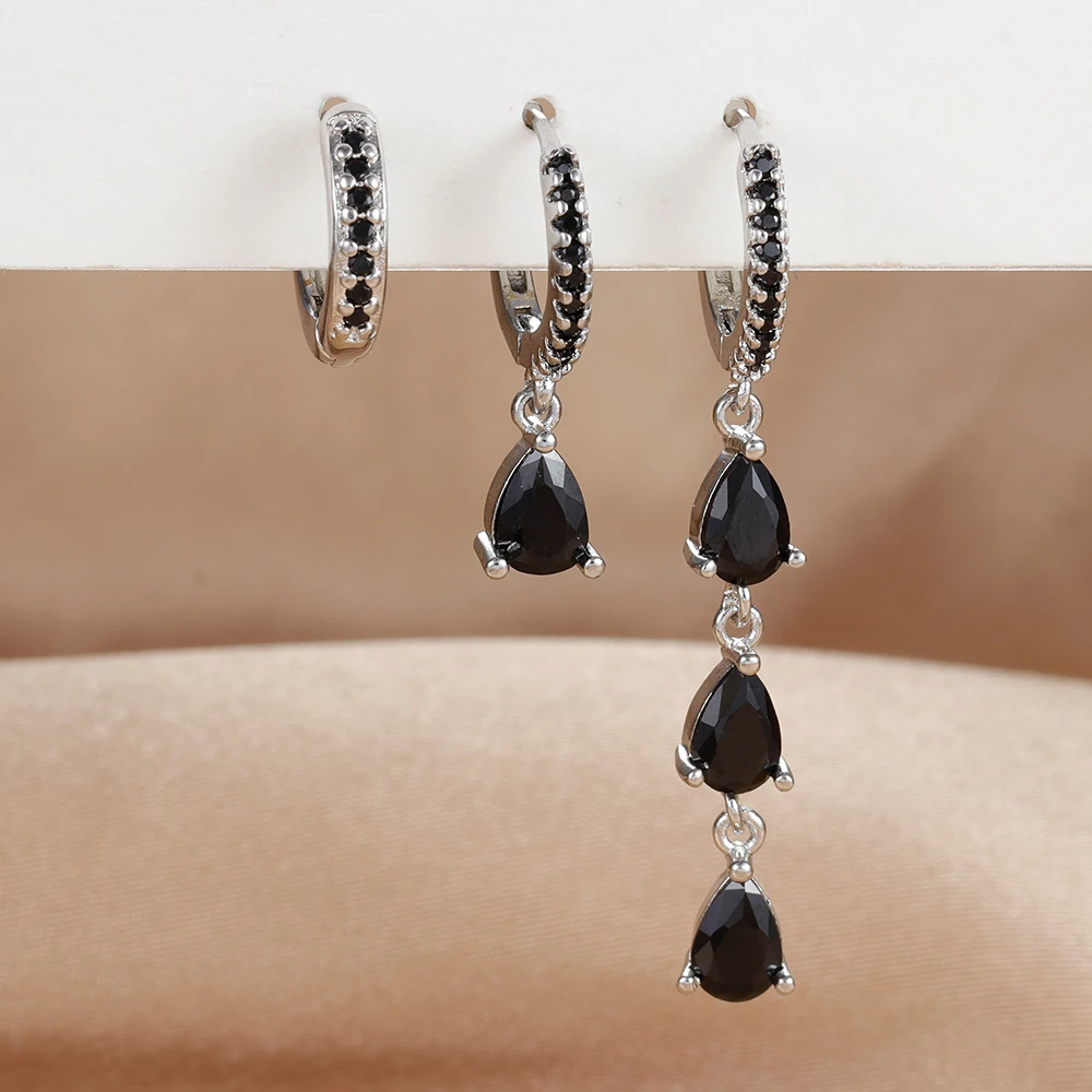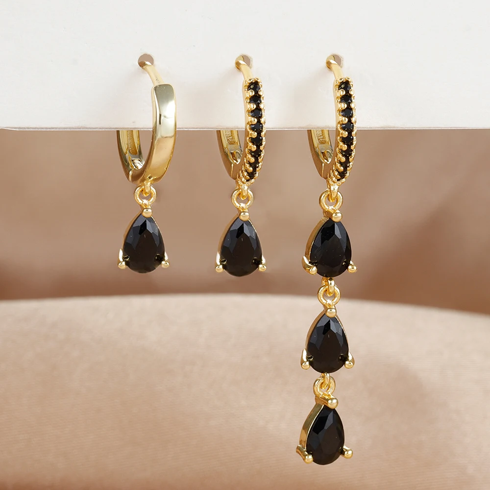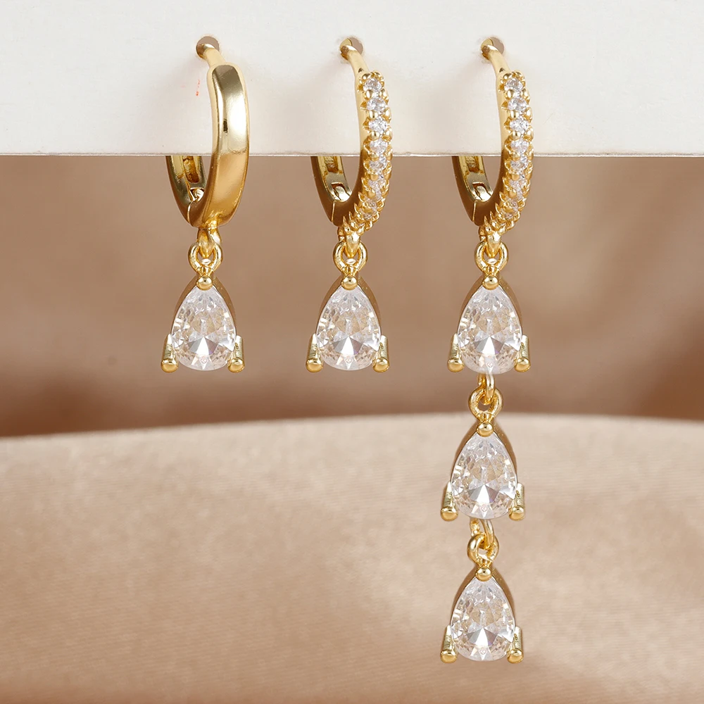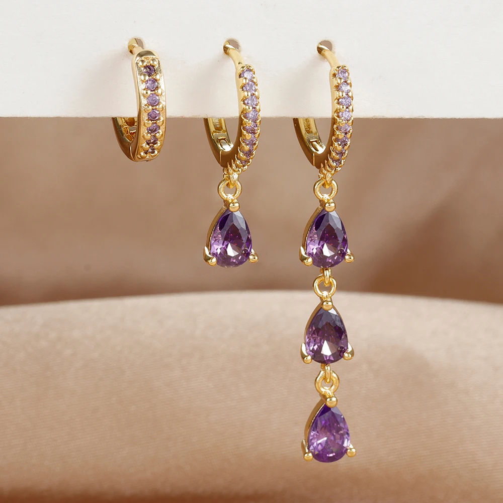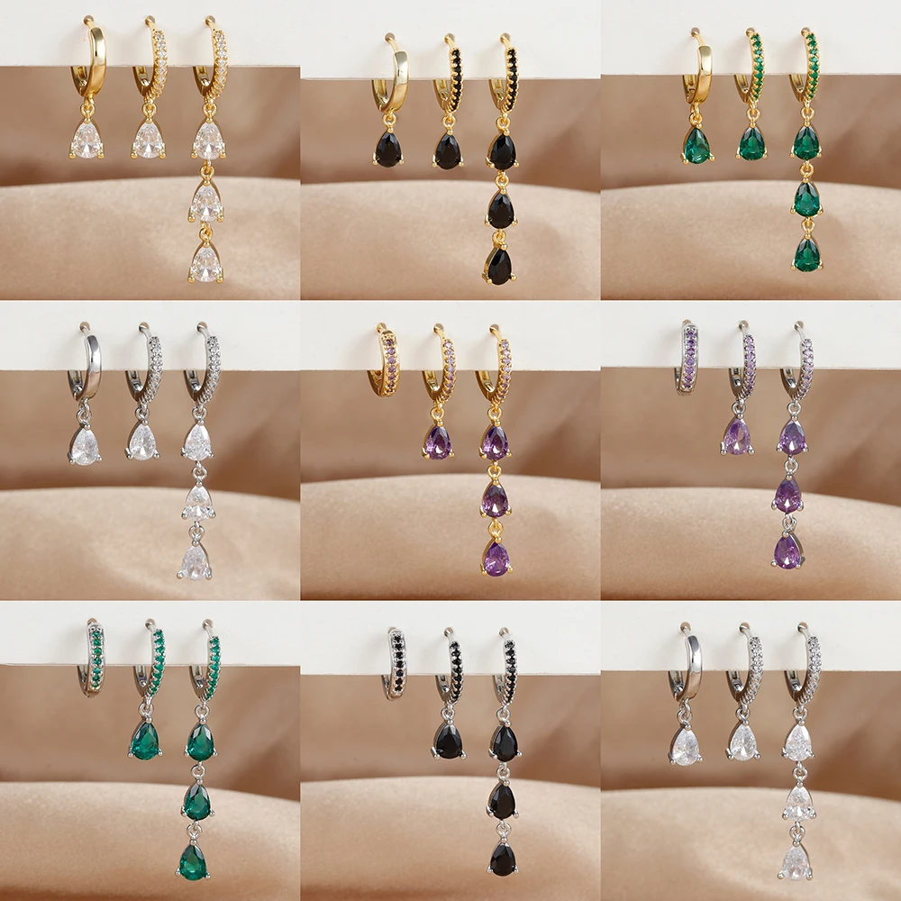 3PCS Fashion Multicolor Zircon Water Drop Small Hoop Earrings Set for Women Stainless Steel Pendant Piercing Trend Jewelry