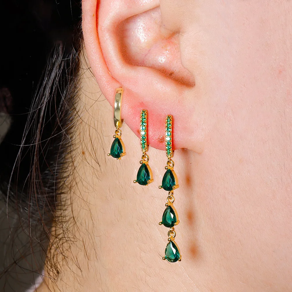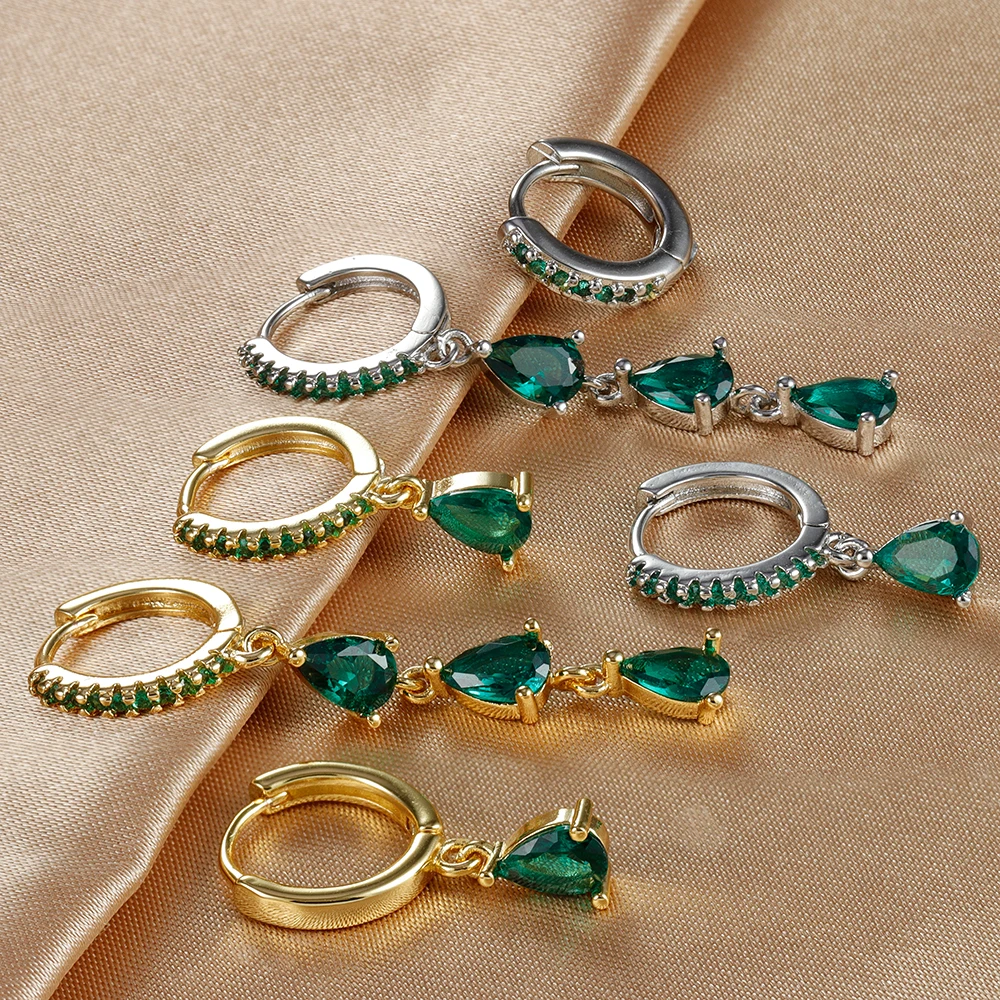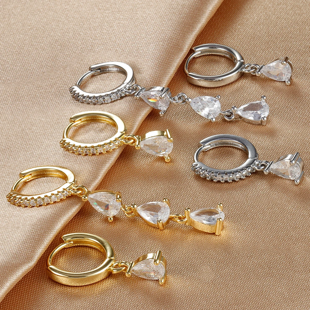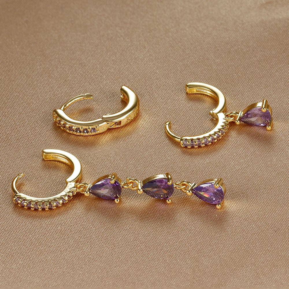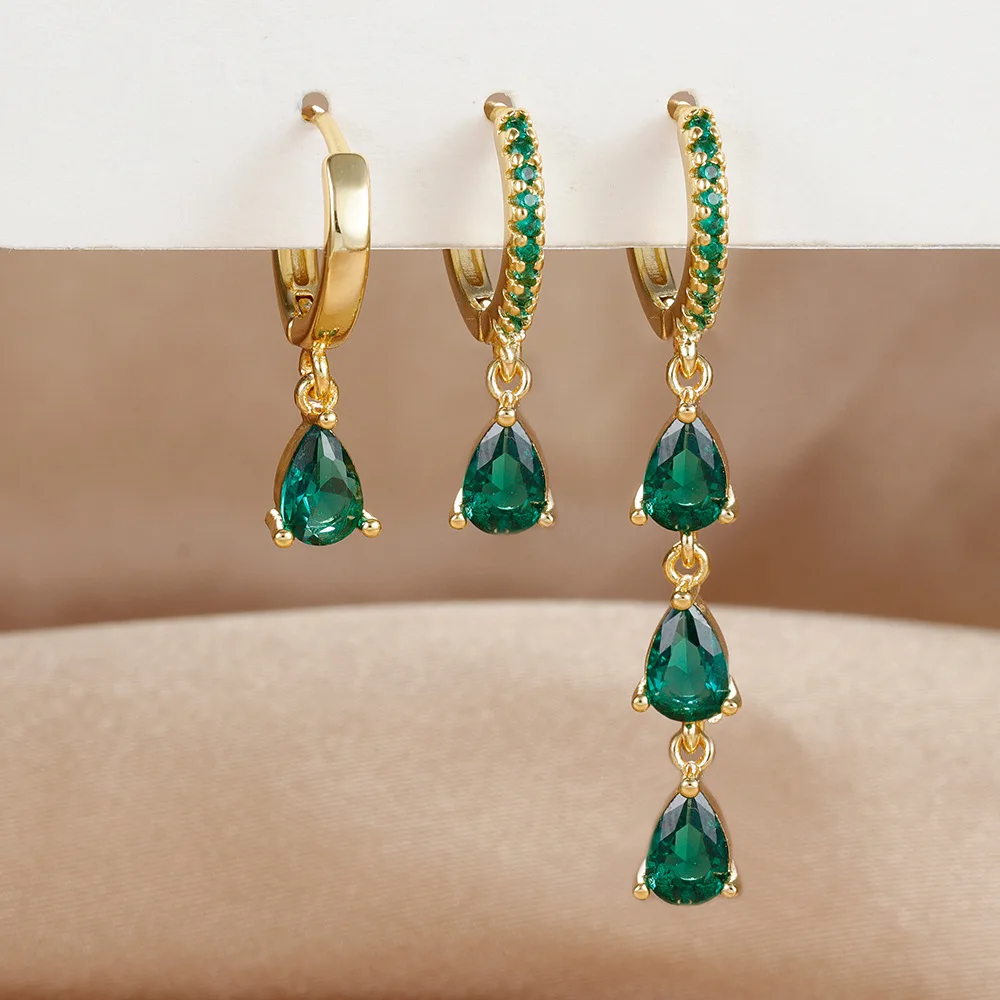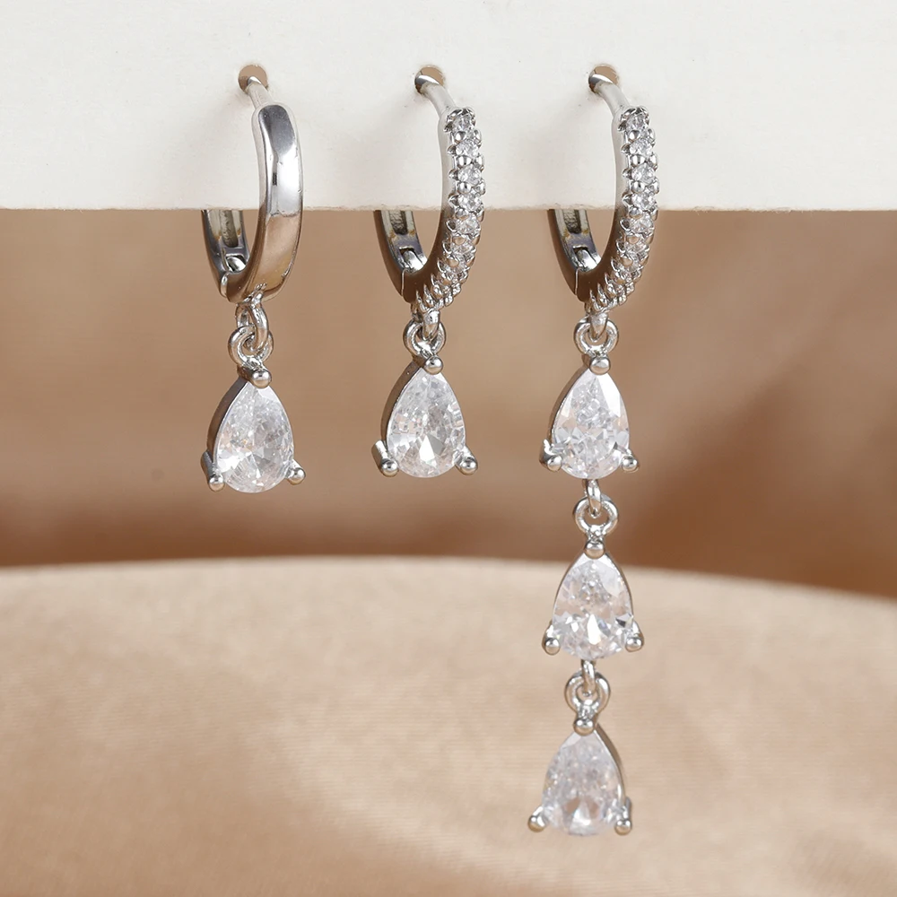 3PCS Fashion Multicolor Zircon Water Drop Small Hoop Earrings Set for Women Stainless Steel Pendant Piercing Trend Jewelry