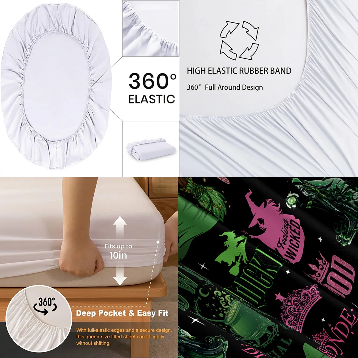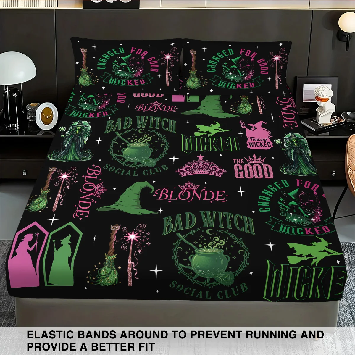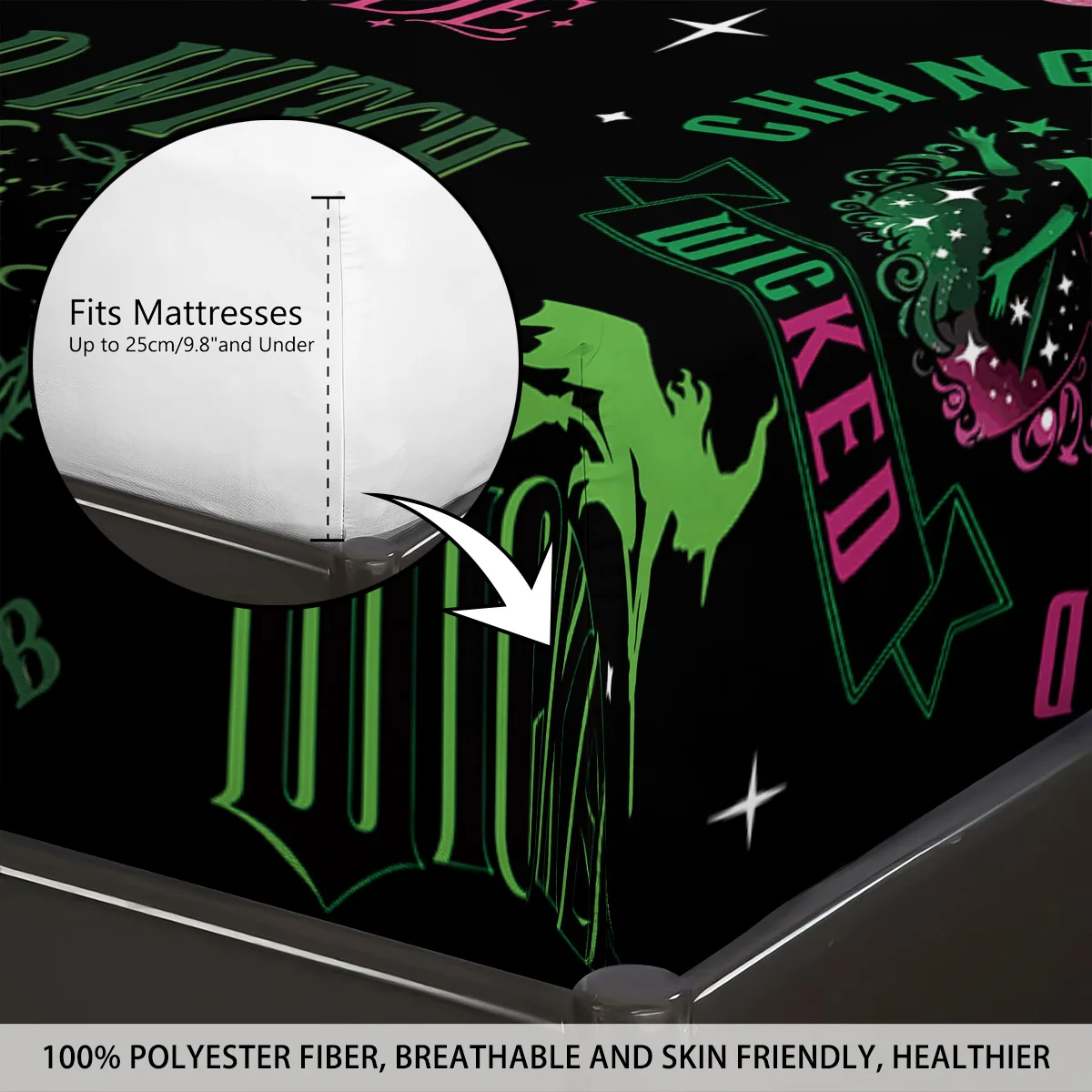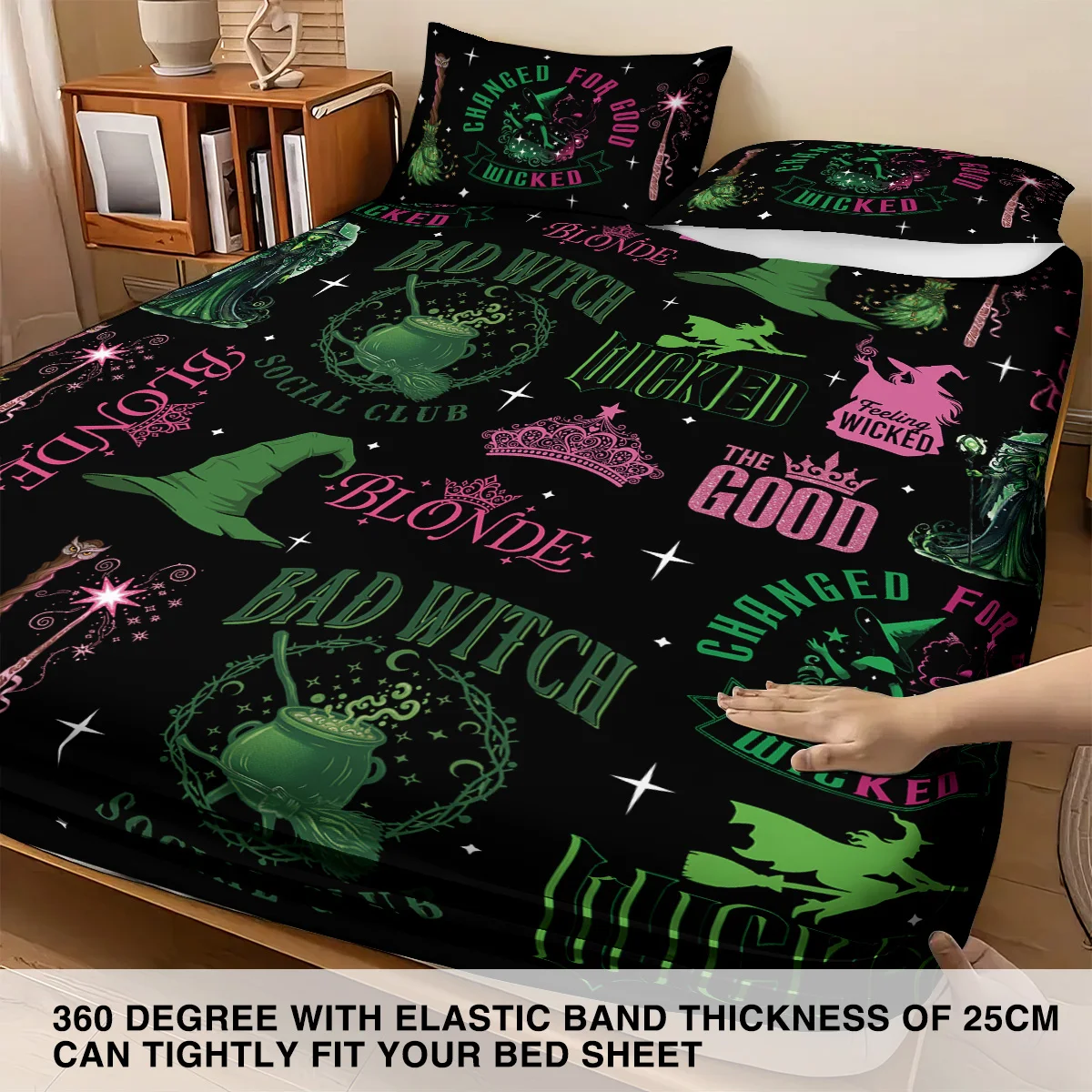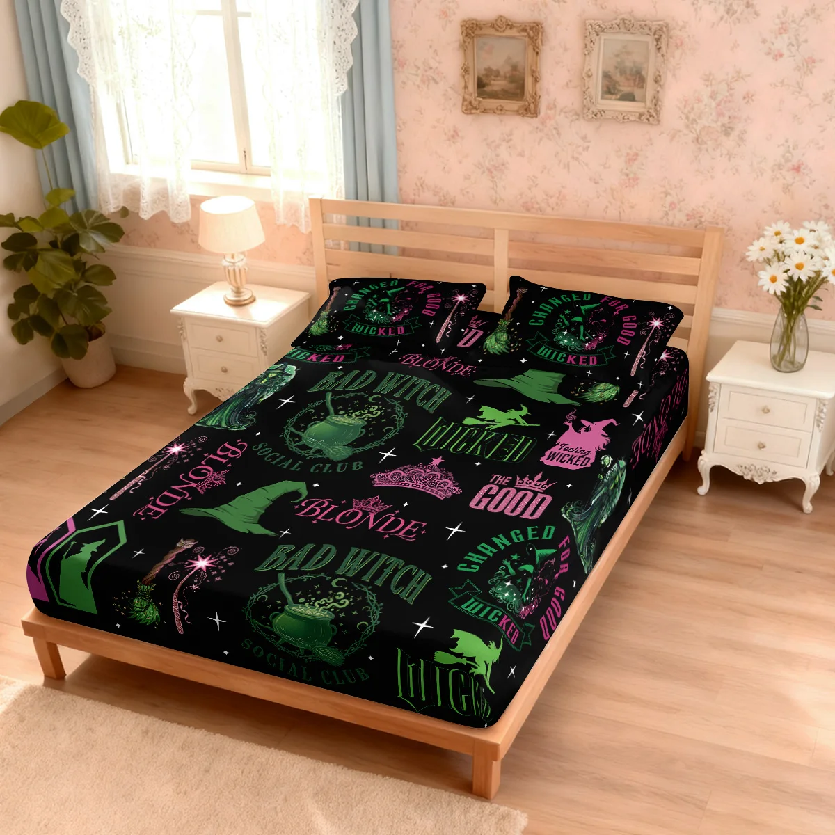 3pcs Magic Wicked Witch Printed Chipless Bed Sheet Set, Multi Size Soft Bed Cover, Bedroom Bedding Decoration