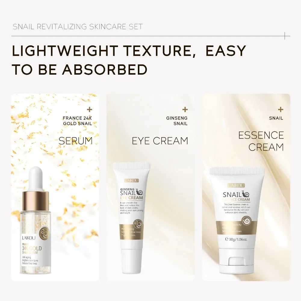 3pcs/Set LAIKOU Vitamin C Facial Set for Hydrating Moisturizing Whitening and Brightening