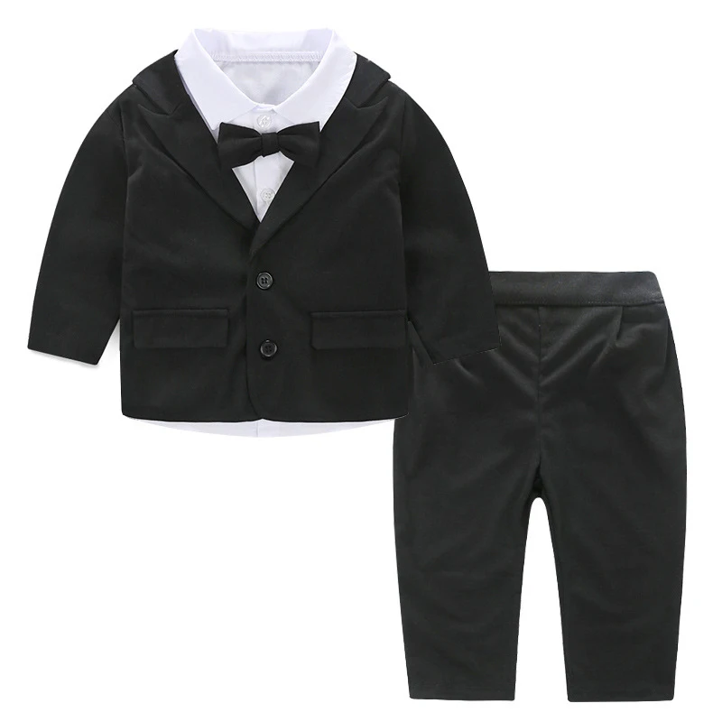 3Piece Sets Spring Baby Boy Clothes Fashion Black Gentleman Suit Coat+Shirt+Pants+Tie Newborn Photography Kids Clothing BC056