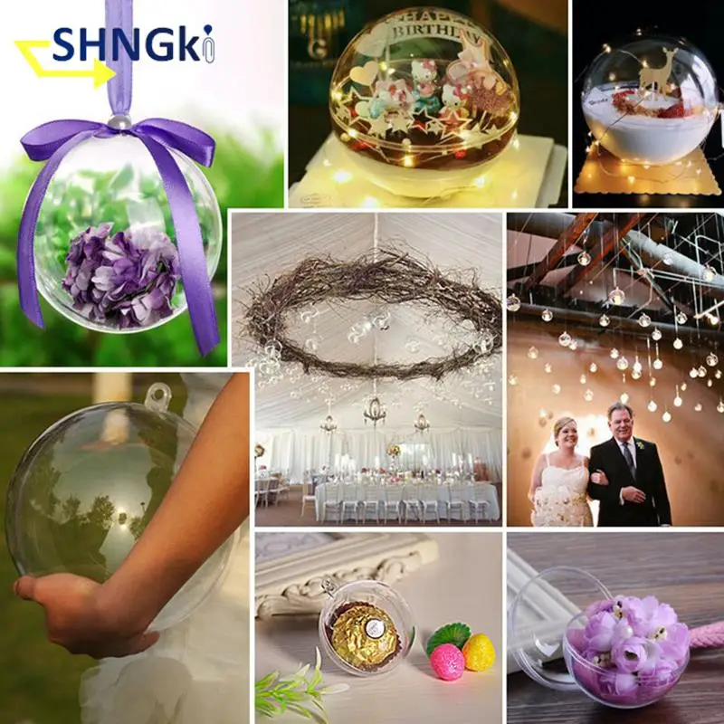 4-10cm Transparent Open Plastic Christmas Tree Pendant Home Decoration Ball Clear Bauble Ornament Gift Present Box Decoration