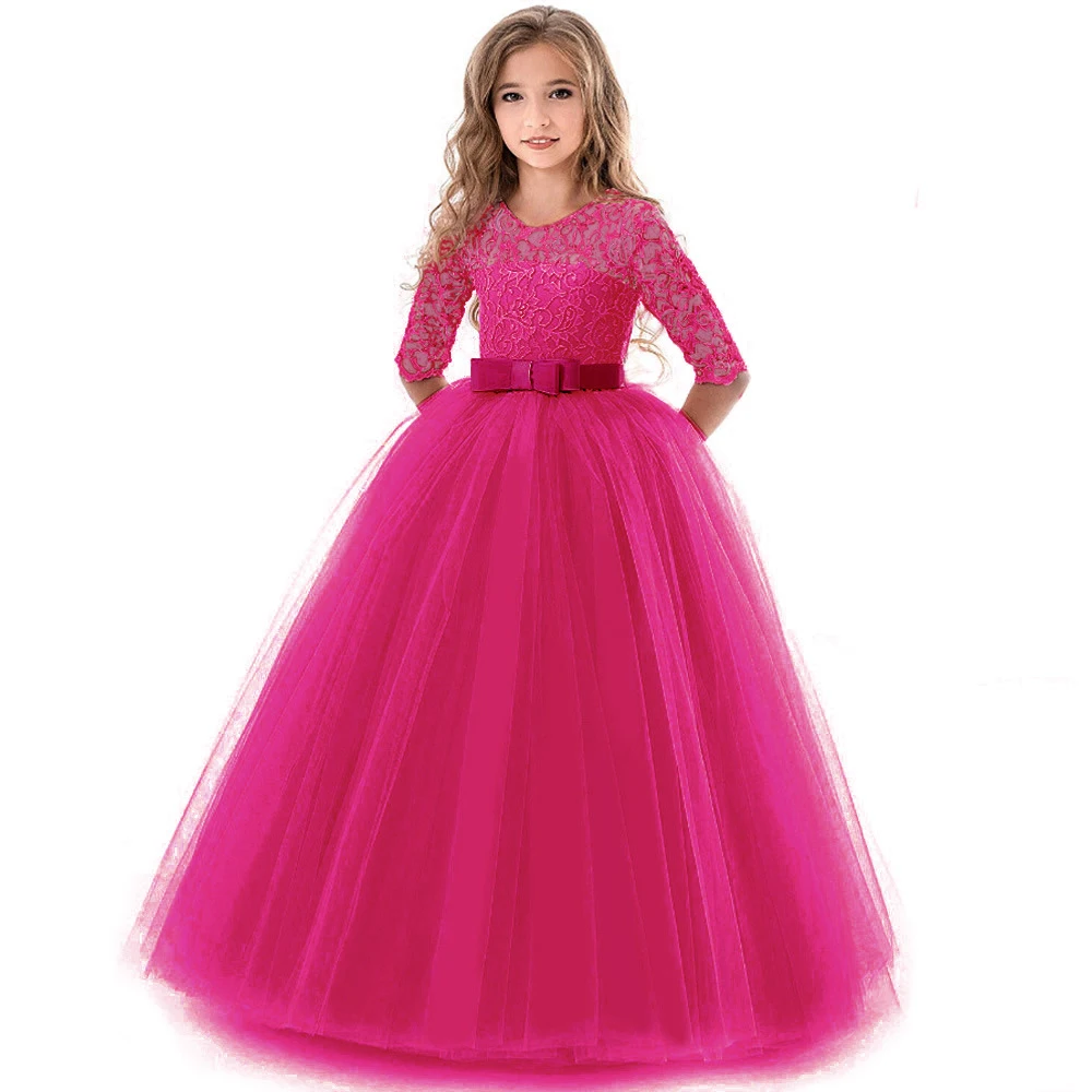 4-14 Years Girls Dress Summer Mesh Fashion Girls Princess Wedding Dress Piano Performance Costume Teenagers New Kids Clothes