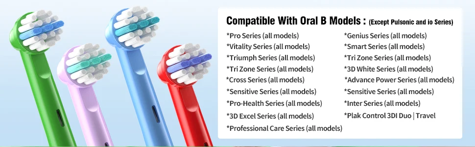 Our toothbrush head is compatible with various Oral B electric toothbrushes: