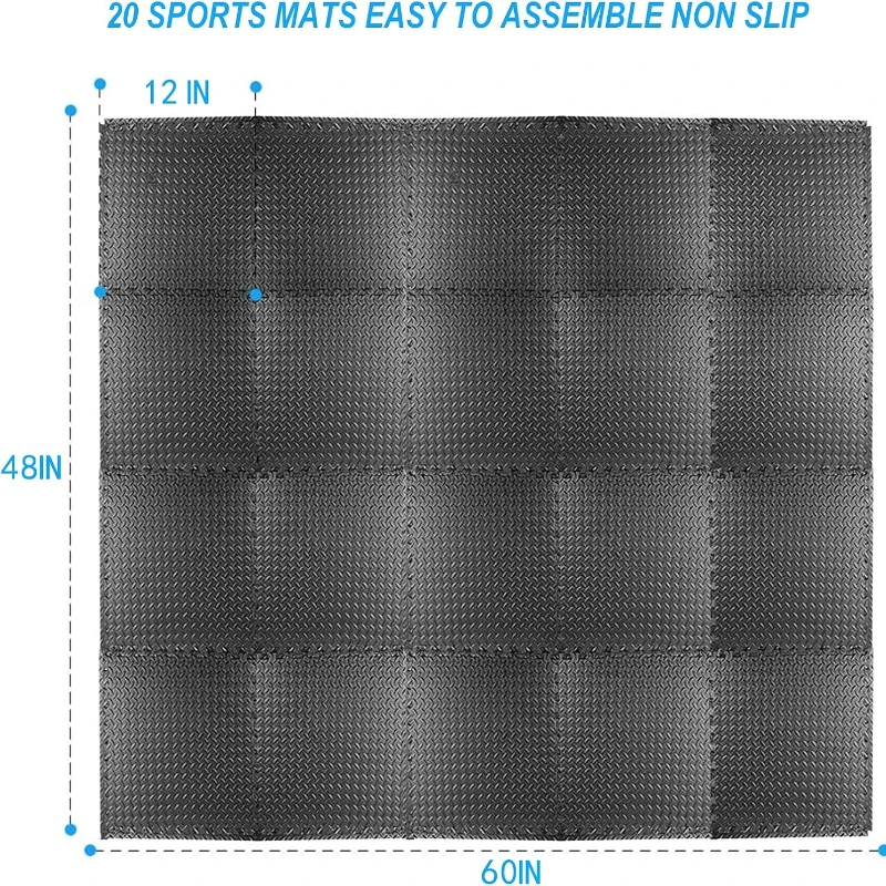 Durable and Non-Slip: Non-slip textured shock-absorbing surface, soft to the touch when exercising, ideal for creating a comfortable fitness area – a combination of high-density EVA foam floor mats and exercise mats, providing excellent support and cushioning.