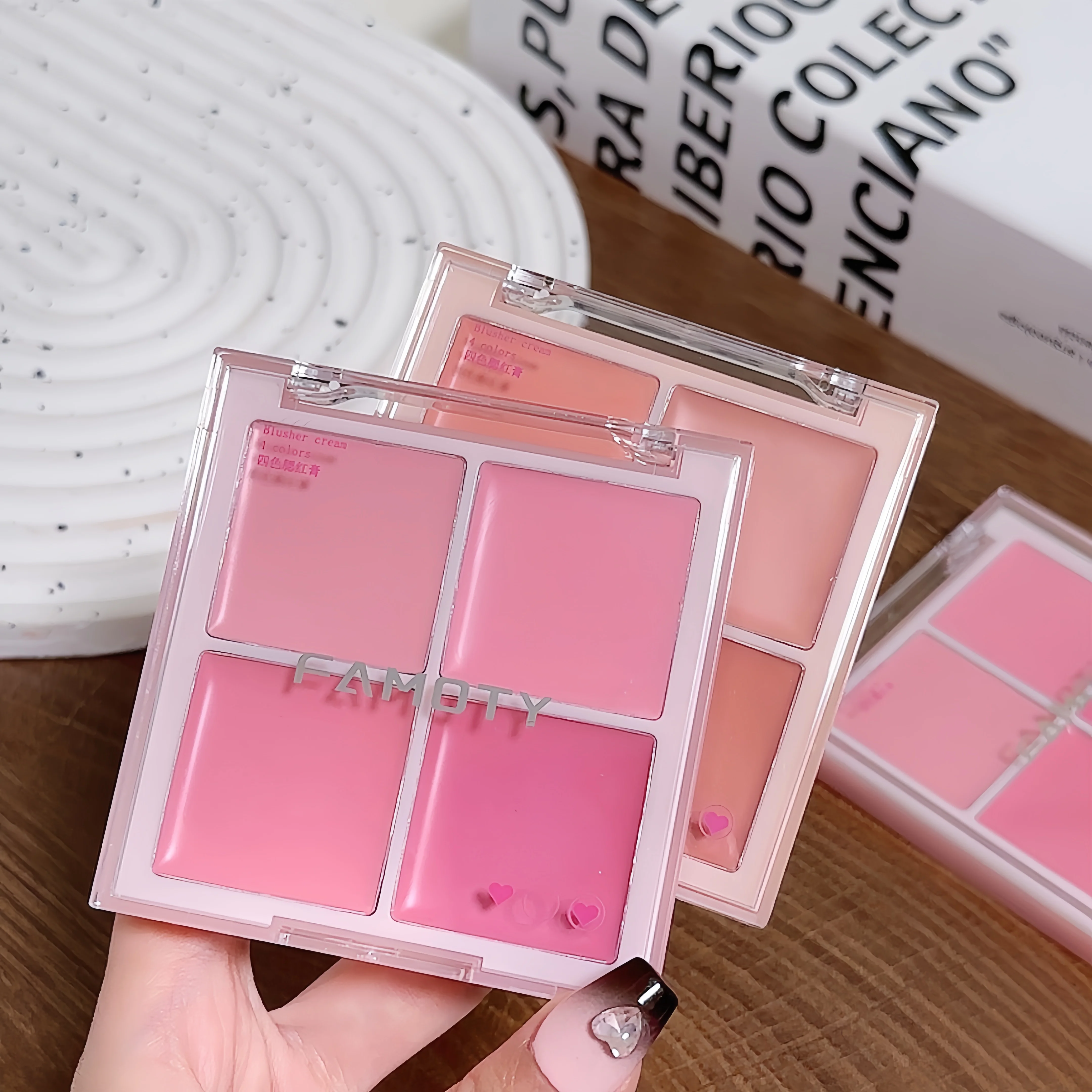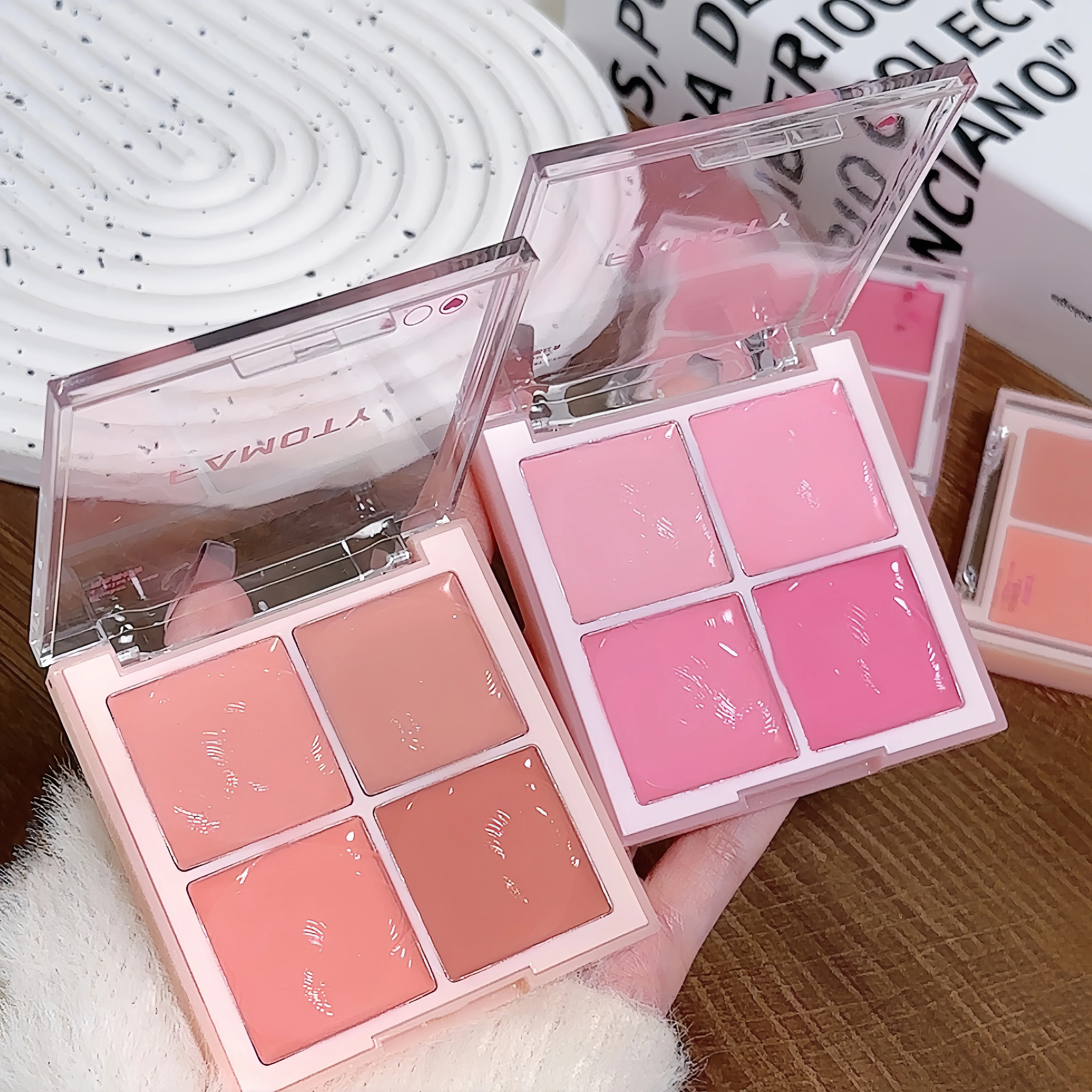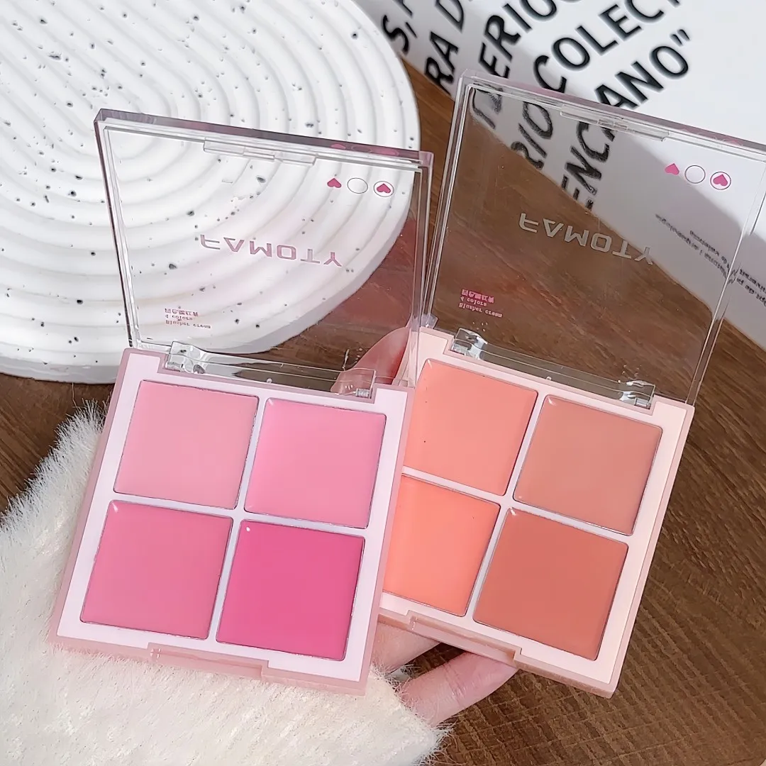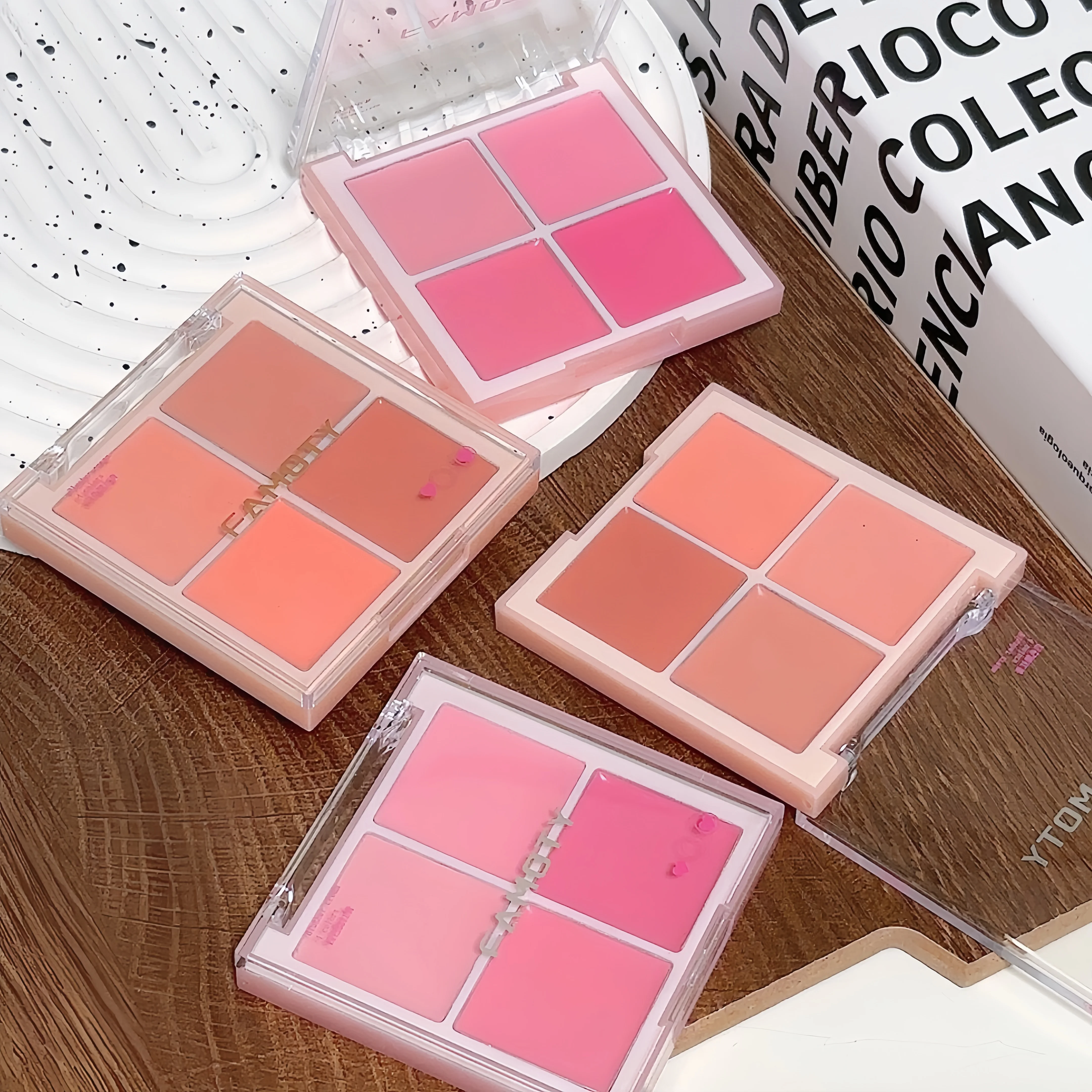 4 Color Blush Cream Natural Nude Makeup Brightening Cheek Peach Pink Blusher Palette Portable Multipurpose Blush Cosmetics