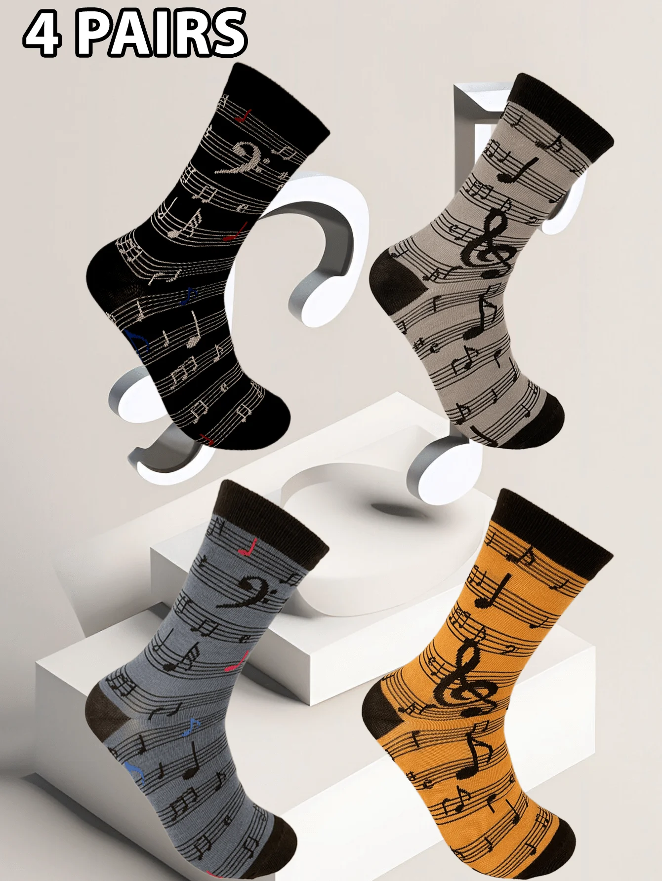 4 pairs/sets of men’s fashion music symbol personality interesting pattern sock combination