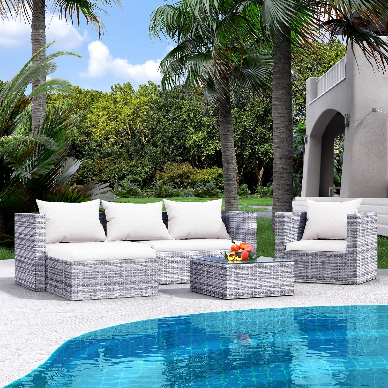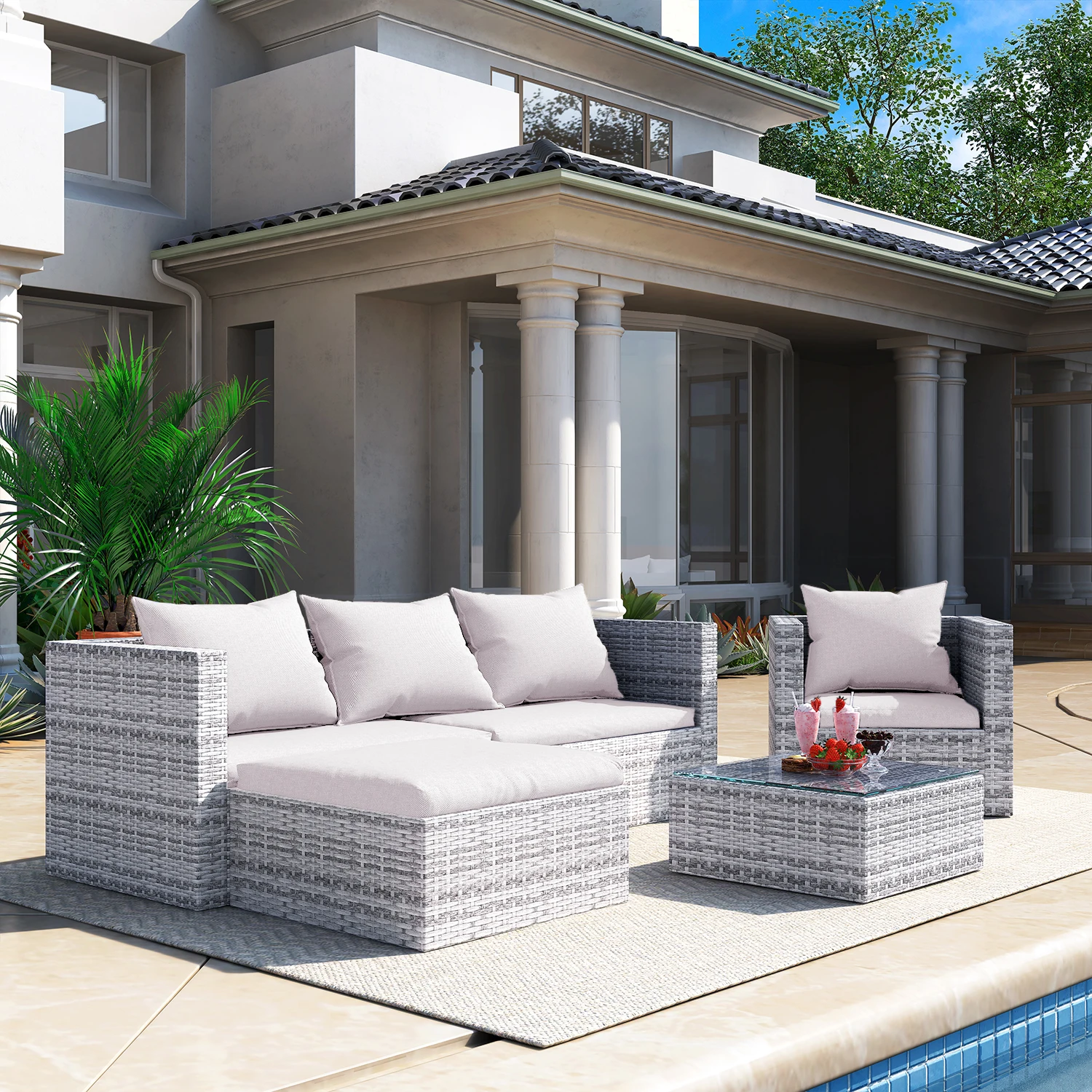 1 review for 4 Seater Rattan Garden Furniture Corner Sofa Set with Coffee Table, Outdoor Patio Lounge Set for Garden Conservatory Terrace