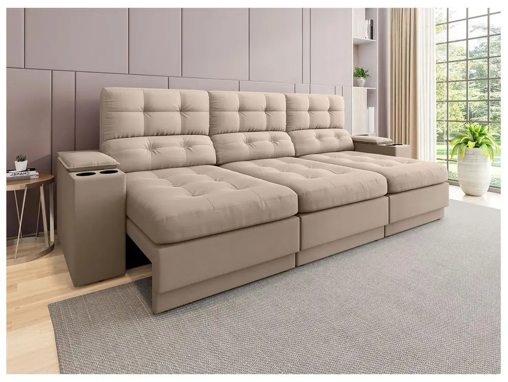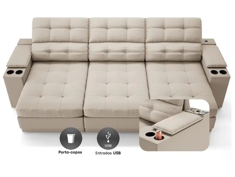 Turn your living room into the movie theater of your dreams with the Neon sofa from Next Sofas. Spacious, with 4 seats, it is perfect to gather family and friends. Enjoy maximum comfort with its retractable seat and multi-stage reclining backrest. The special touch is due to the velosuede coating, which offers an incomparable softness. Designed for your total convenience, it features 4 cup holders and USB ports to keep your devices always charged. Its robust structure in solid wood of eucalyptus 100% of reforestation ensures durability and sustainability. It is more than just furniture, it is the center of attention and your new favorite place to relax and have fun.