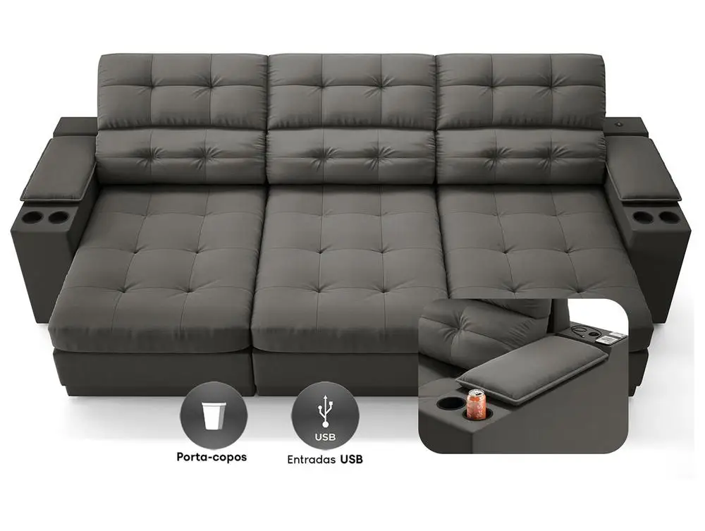 Turn your living room into the movie theater of your dreams with the Neon sofa from Next Sofas. Spacious, with 4 seats, it is perfect to gather family and friends. Enjoy maximum comfort with its retractable seat and multi-stage reclining backrest. The special touch is due to the velosuede coating, which offers an incomparable softness. Designed for your total convenience, it features 4 cup holders and USB ports to keep your devices always charged. Its robust structure in solid wood of eucalyptus 100% of reforestation ensures durability and sustainability. It is more than just furniture, it is the center of attention and your new favorite place to relax and have fun.