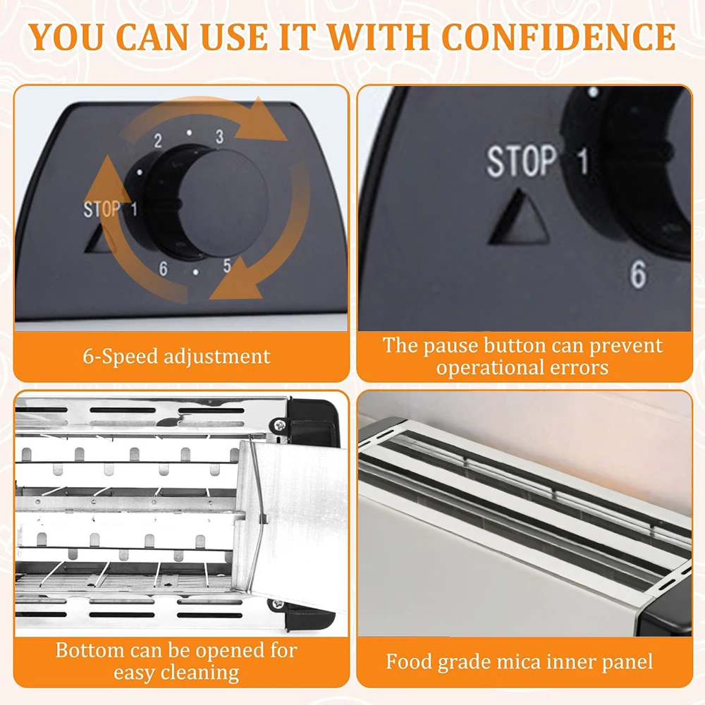 6 Toasting Modes: This bread maker features 6 precise toasting modes to meet diverse flavor preferences. Gear 1-2 offers light toasting, keeping the bread soft inside with a slightly golden surface, perfect for kids or those who like tender texture. Gear 3-4 provides medium toasting, creating a balanced crispness and aroma, ideal for matching with jam or butter. Gear 5-6 delivers deep toasting, producing a crunchy crust and rich wheat flavor, suitable for making toast with avocado or fried eggs.