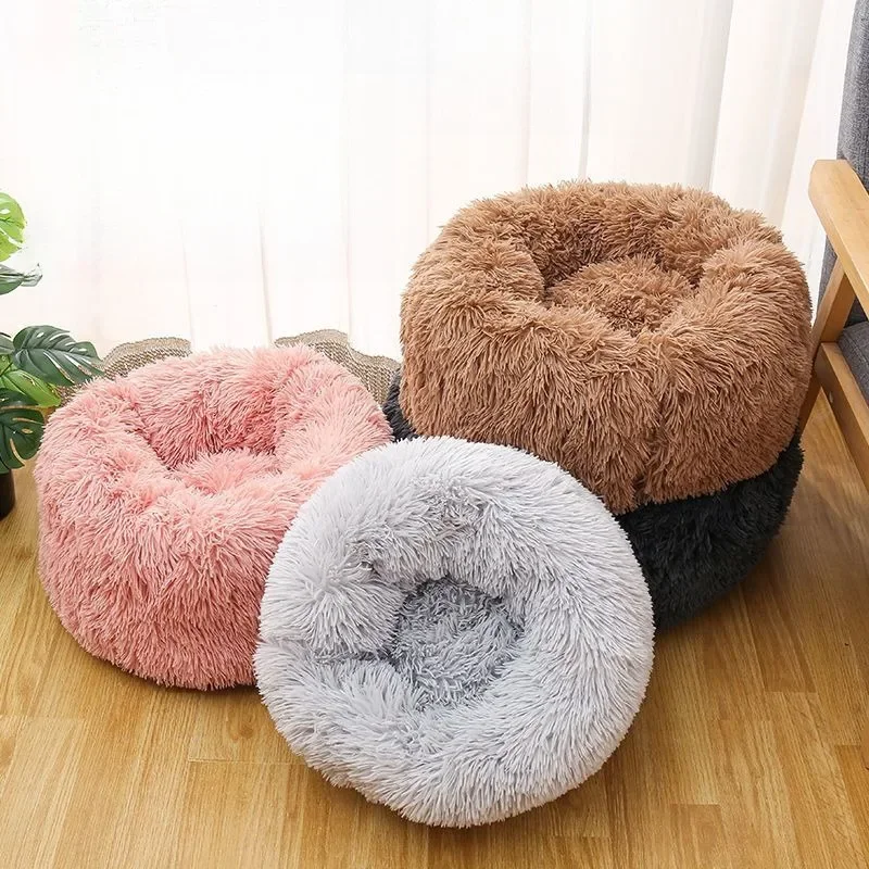 40-70cm Home Plush Pet Nest Super Soft Warm Detachable and Washable Round Pet Bed for Dog and Cat House Winter Warm Sleeping