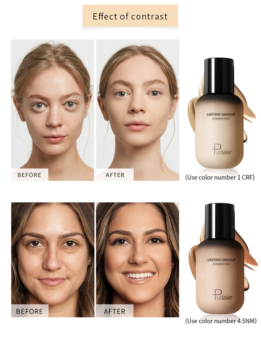 Be the first to review “40ML Face Liquid Foundation Full Concealer Makeup Waterproof Base Brighten Whitening Cover Dark Circle Matte Foundation Cosmetic”