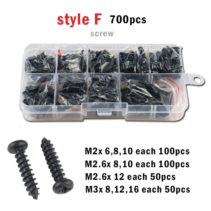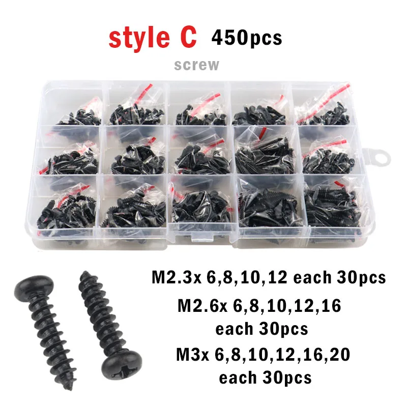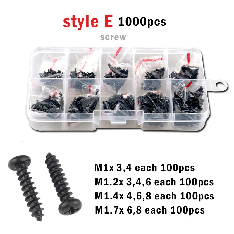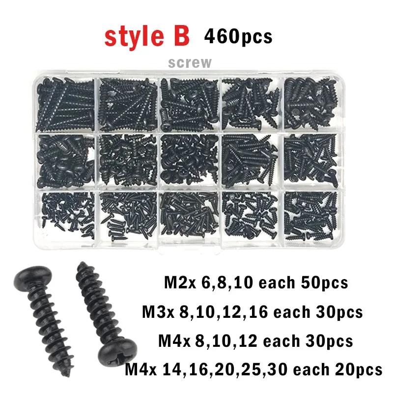 450-2010pcs M1.2 M1.4 M2 M3 M4 Black Cross Phillips Pan Round Head Carbon Steel Self tapping Wood Screw Set Assortment Kit Box