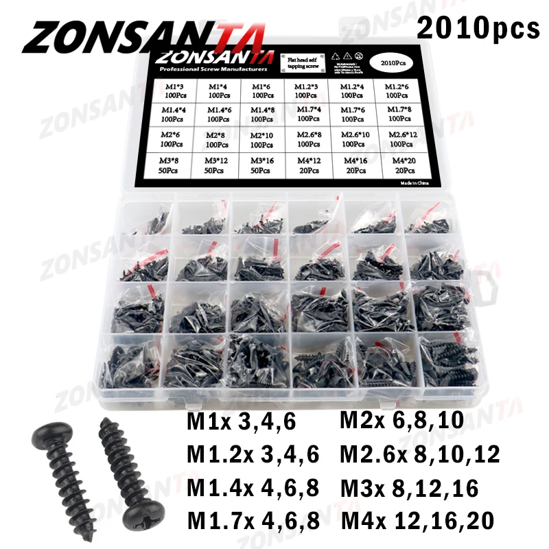 (2010pcs M1 M1.2 M1.4 M1.7 M2 M2.6 M3 M4 -Carbon Steel)