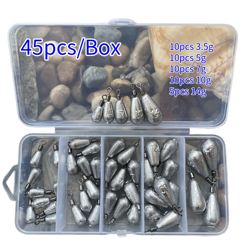 5 reviews for 45PCS/Box Drop Shot Fishing Weight Sinker 3.5g 5g 7g 10g 14g Tube Bullet Plumb Pendant Metal Jig Sea Tackle Kit Pesca Tool