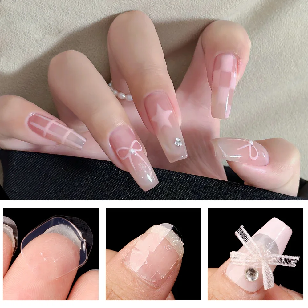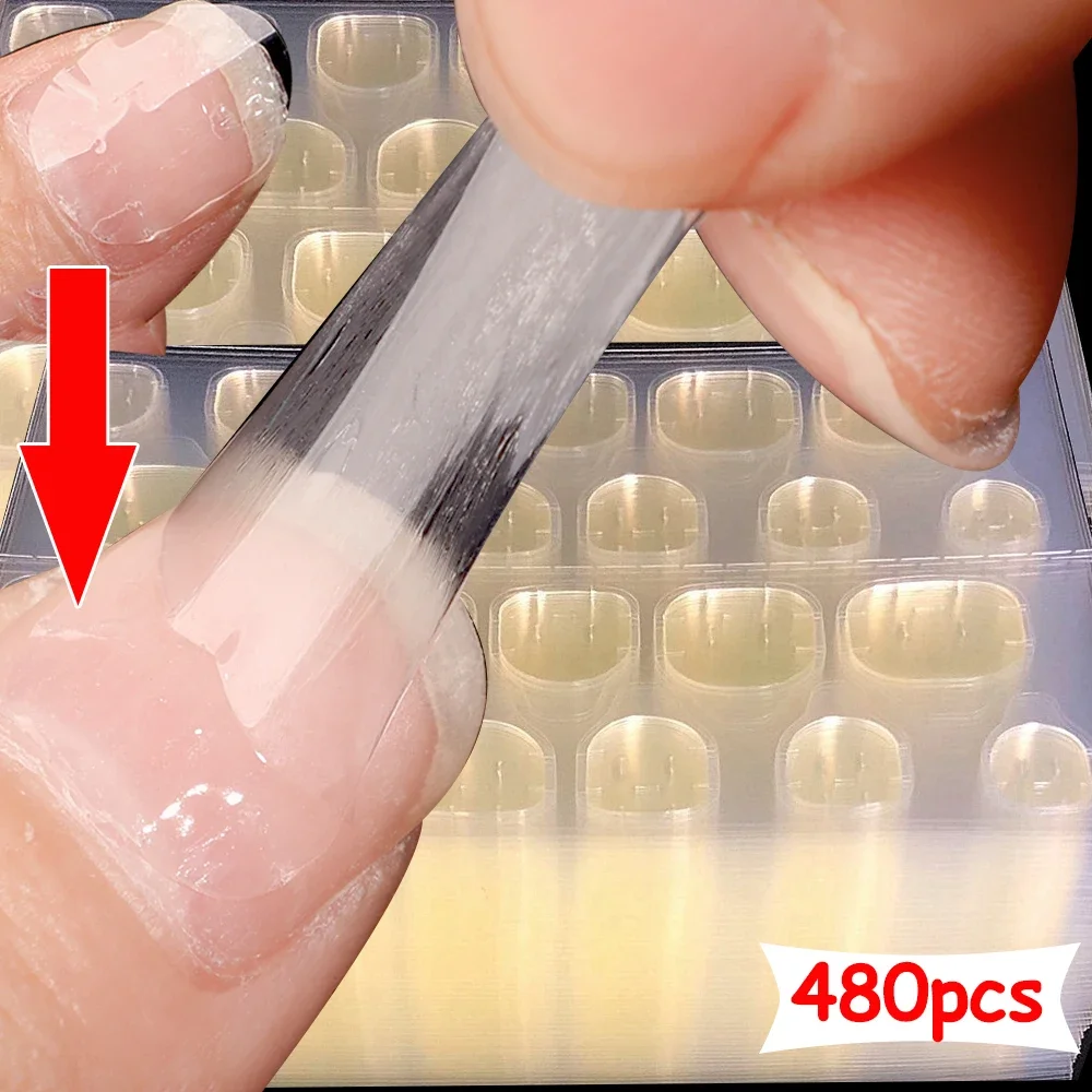 480pcs UV Nail Jelly Glue Breathable Transparent False Nail Glue Stickers Double Side Adhesive Film Glues Tape for Press-on Tips