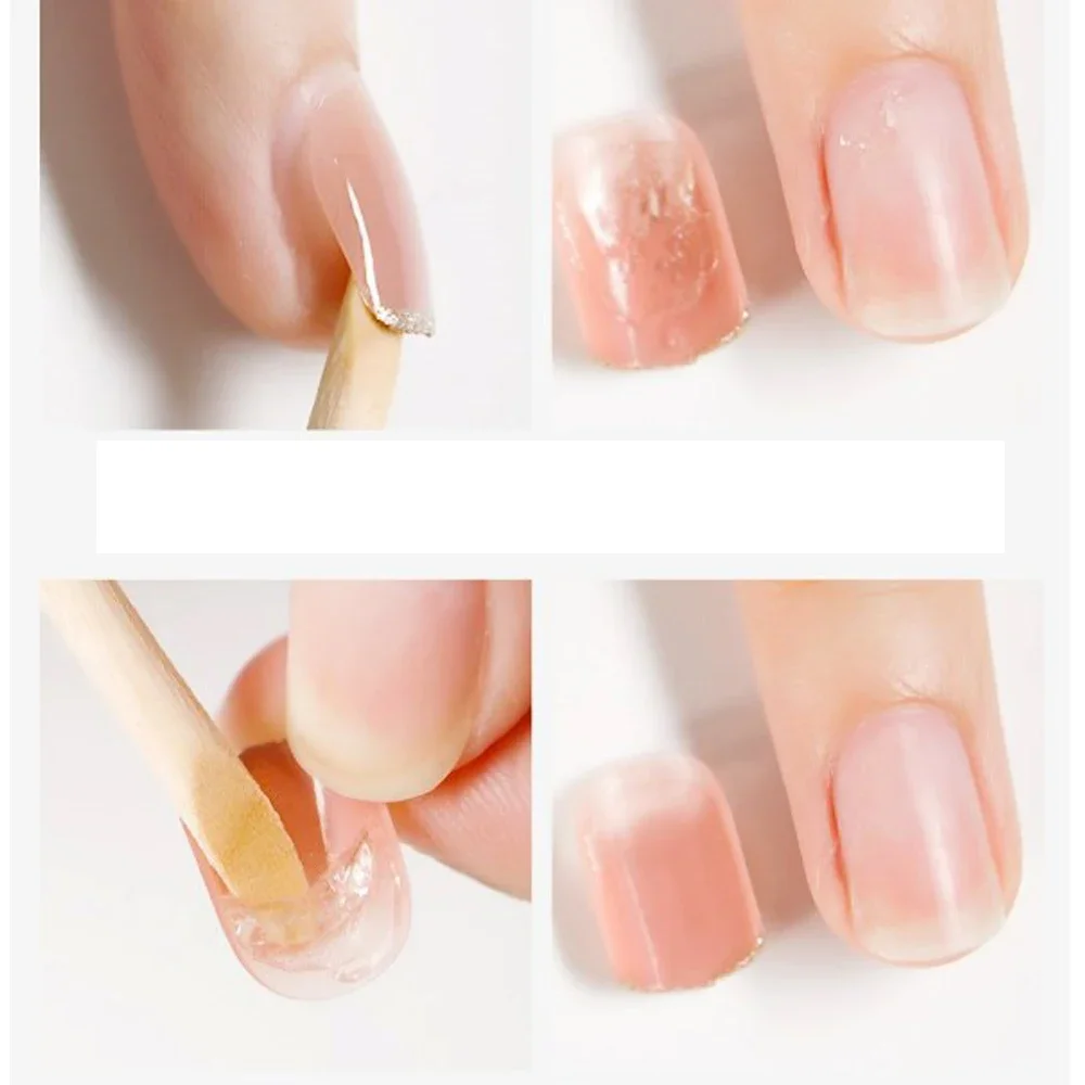 Nail polish remover Process: 1. Lift the nail surface out of the gap. 2. Wait for 10 seconds to dissolve and then remove; 3. Spray nail polish remover into the gap; 4. It can be effectively removed