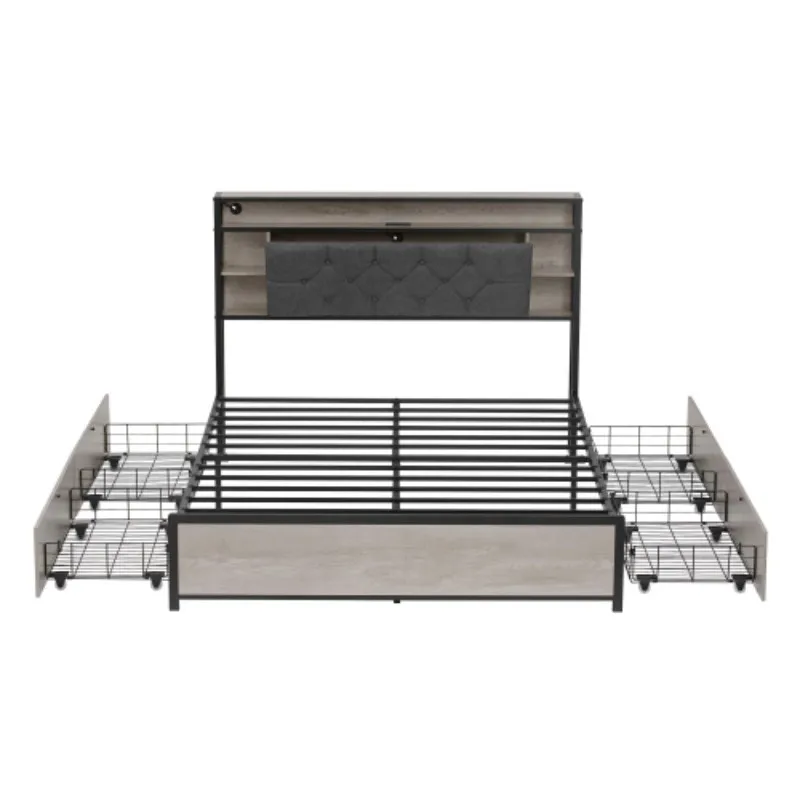 – Ample storage space:Storage drawers & Concealed headboard storage & Bedside storage