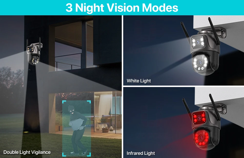 Intelligent dual light visual modes- Infrared mode & Color night vision mode