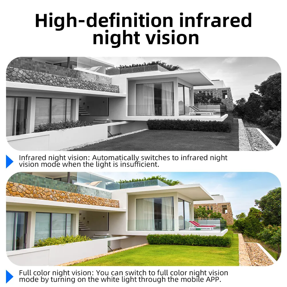 [Remote Control and Watch up to 4 Scenes] You can remotely monitor your home, dog, yard, etc. through your mobile phone at any time. With the designated app, you can watch up to 4 scenes at the same time. More direct, more convenient and more comprehensive.