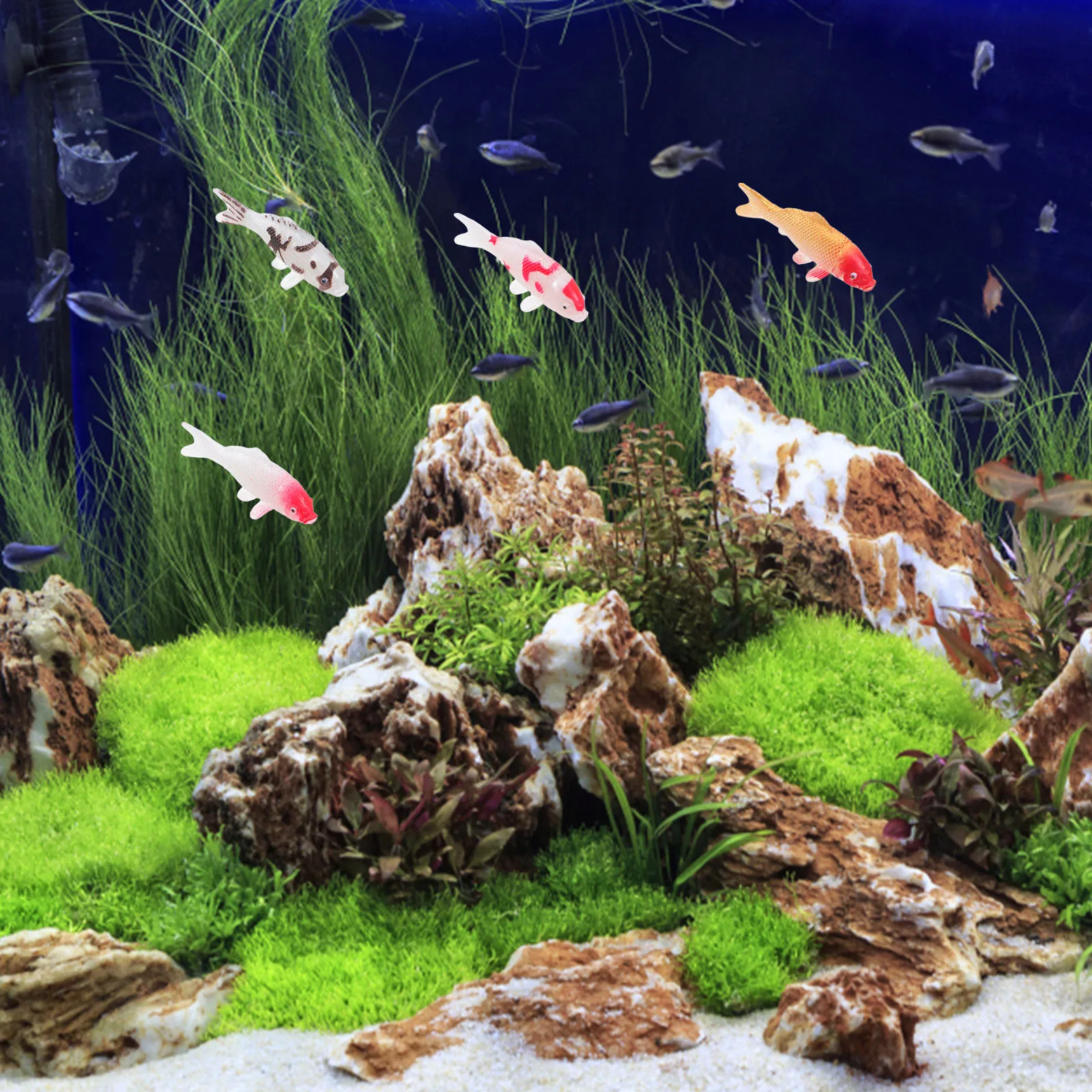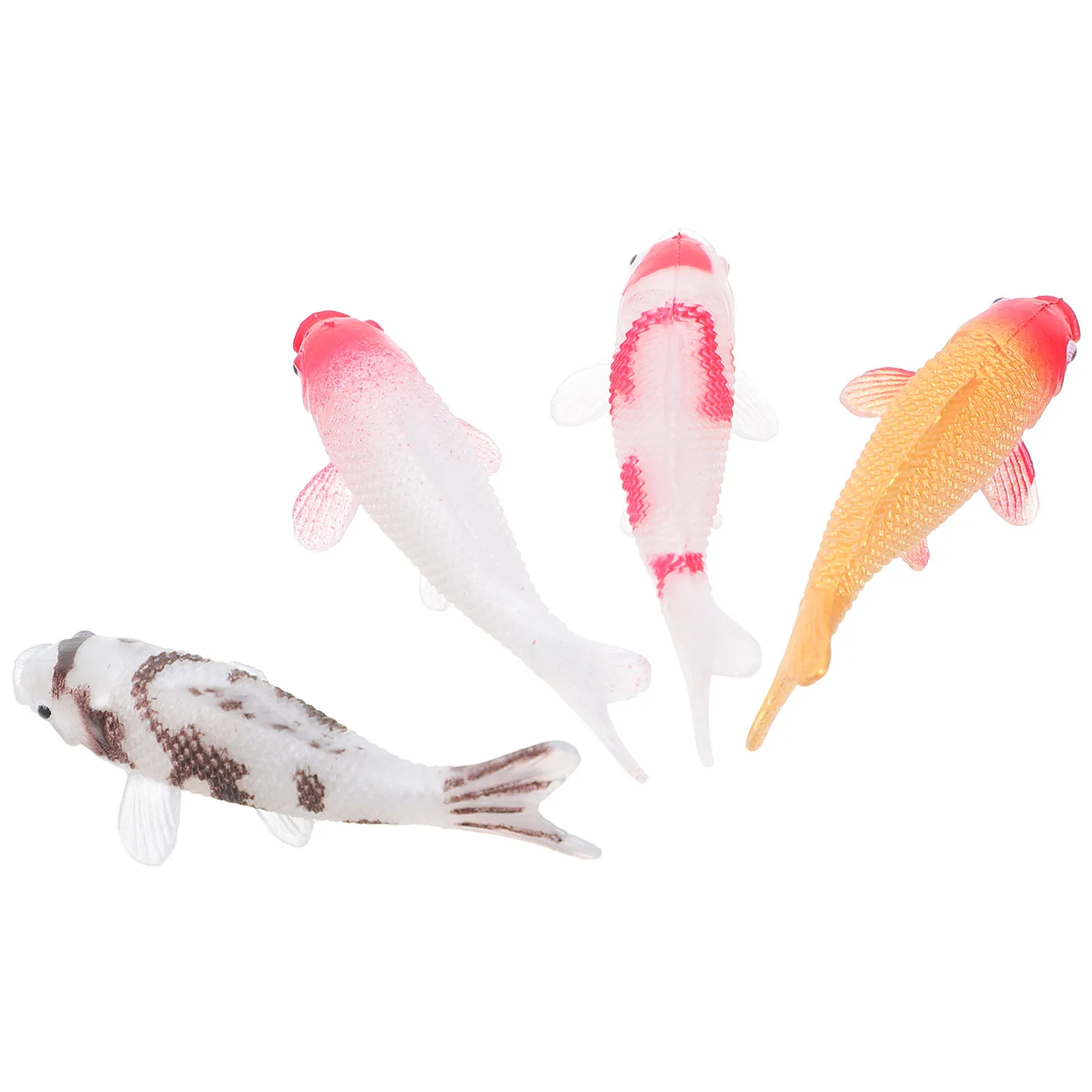 4pcs Mini Simulated Koi Fish Decor Lifelike Aquarium Garden Sculpture Desk Ornaments Plastic Compact Fish Tank Decorations