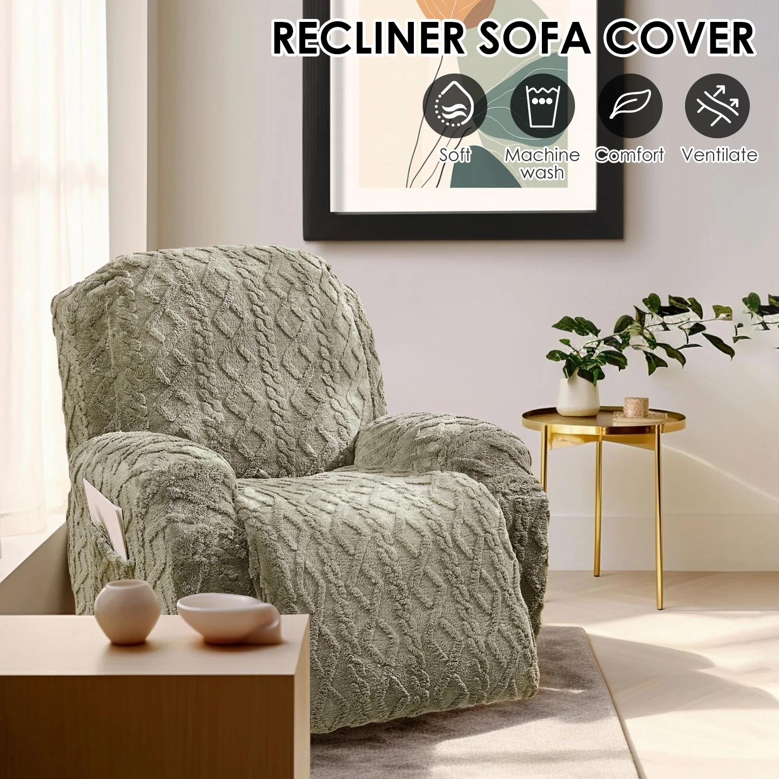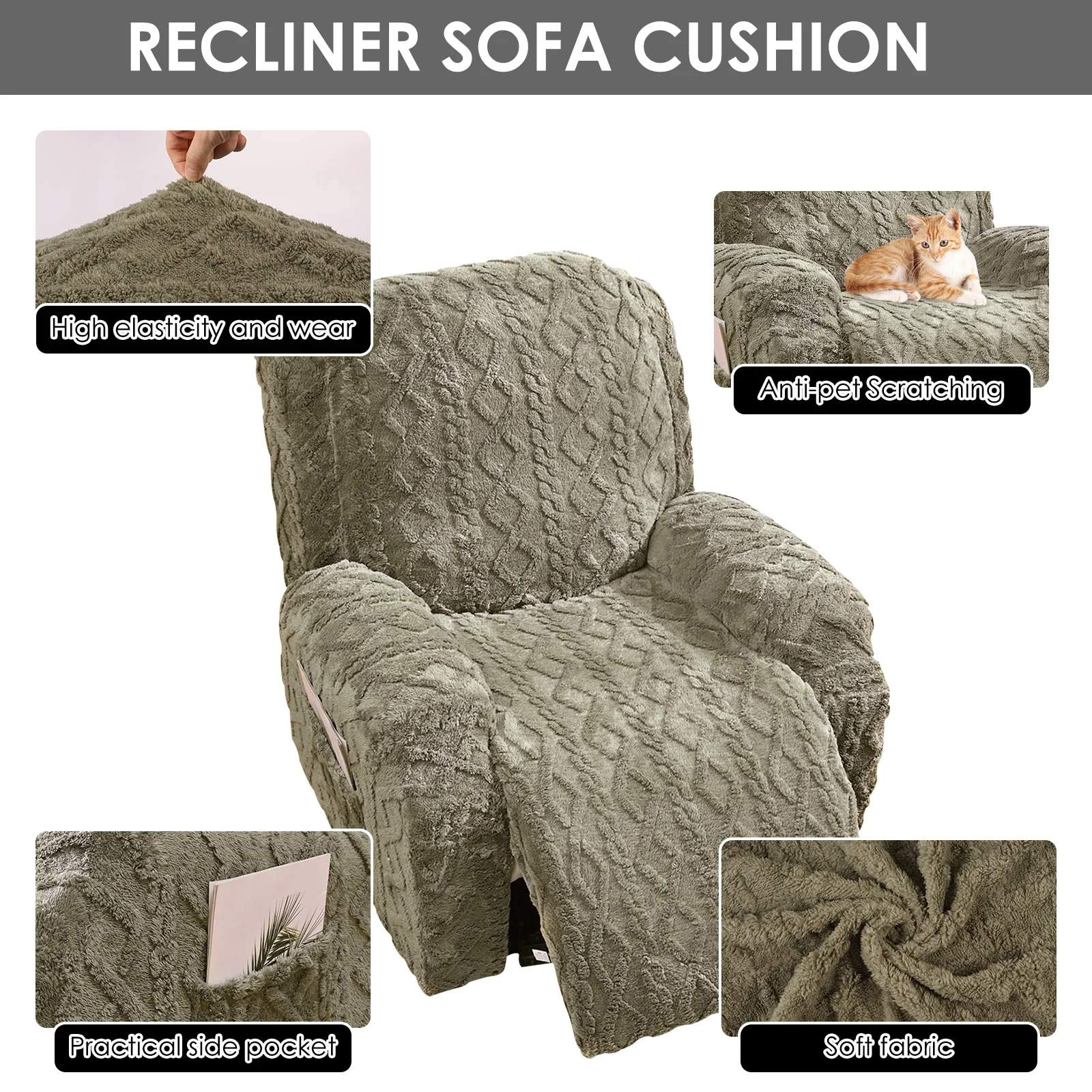 Anti Slip Recliner Cover : Equipped with thick elastic bands that securely cover the bottom edges , providing comprehensive protection . No adjustments are needed after sitting , and installation is easy