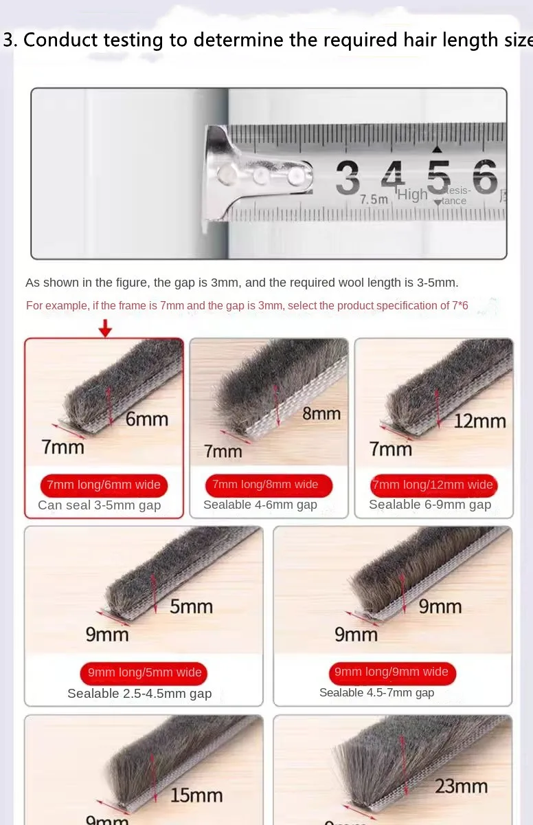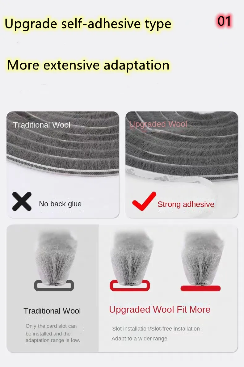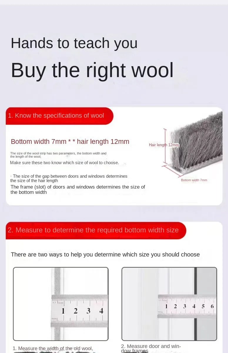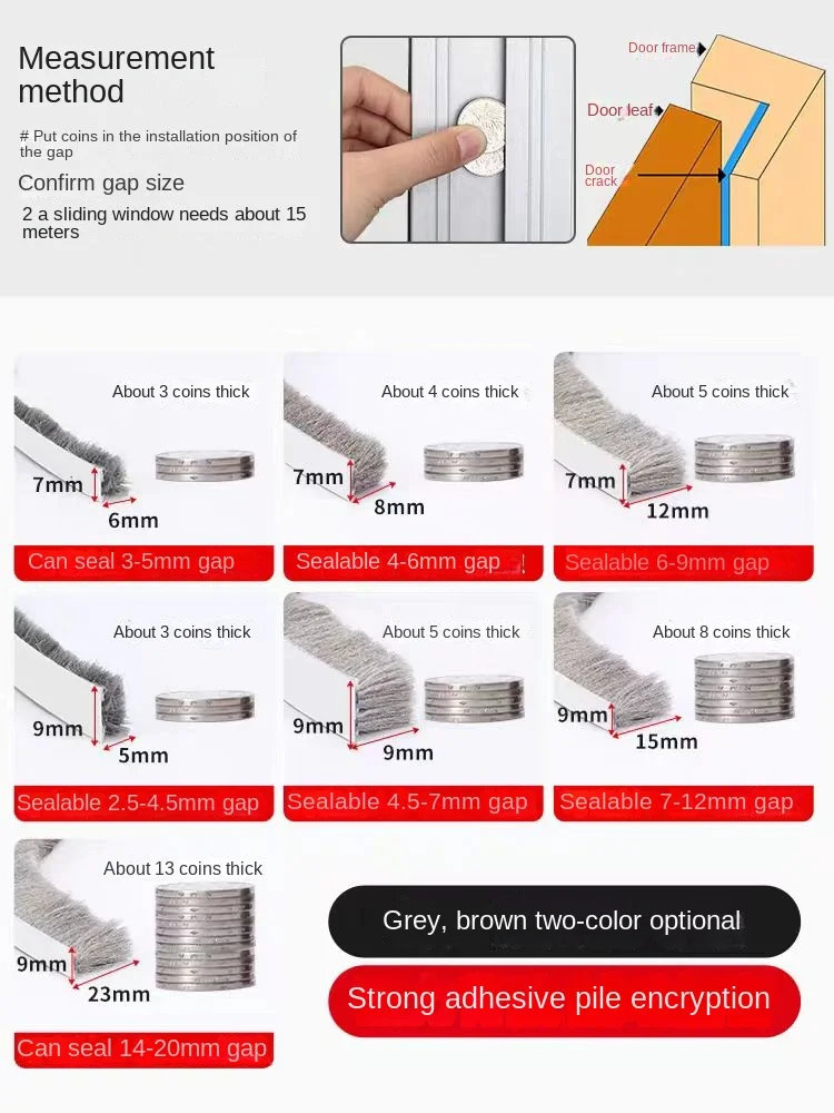 5/10/20 Meter Self-Adhesive Weather Stripping for Home Door & Window Soundproofing Dustproof Windproof Brush Strip