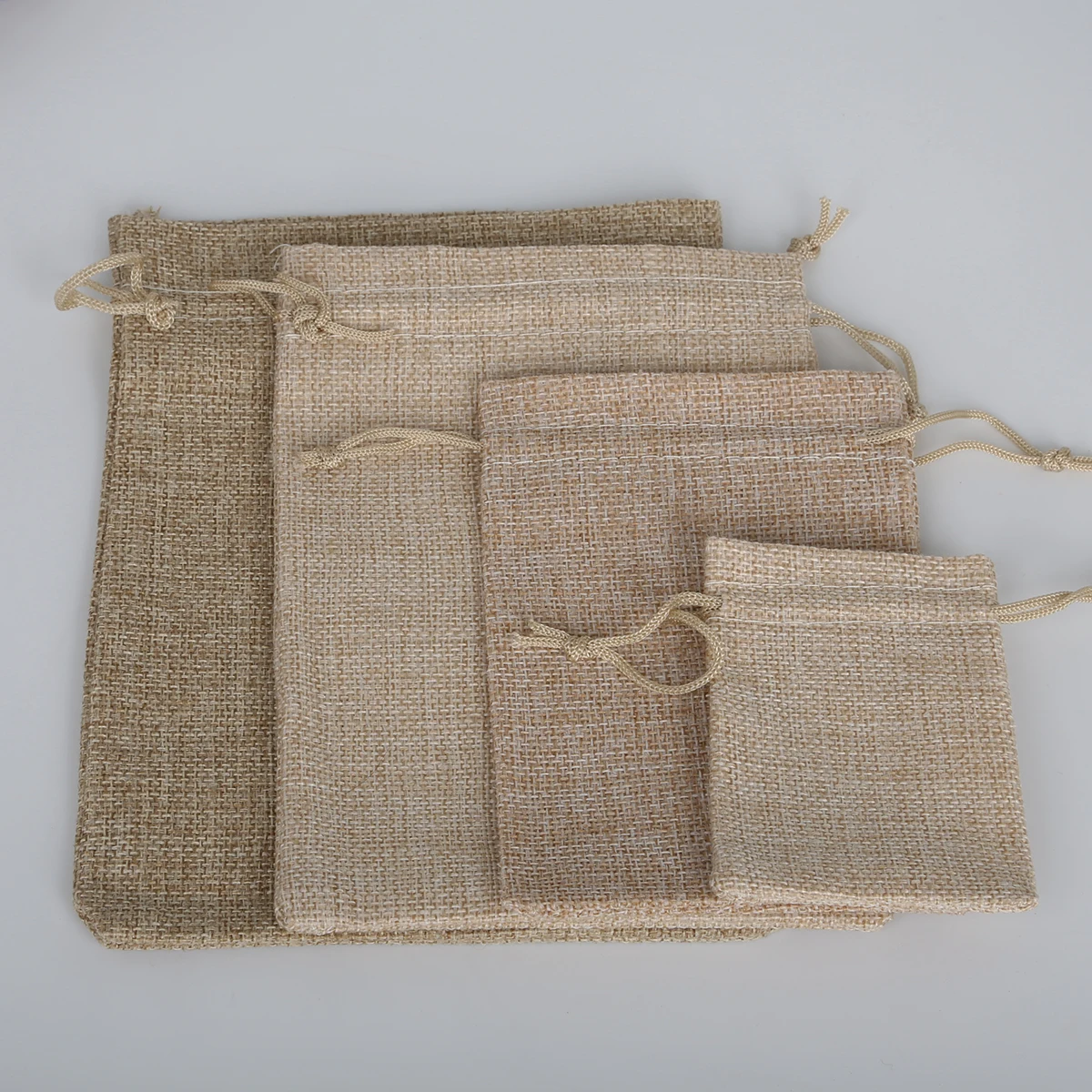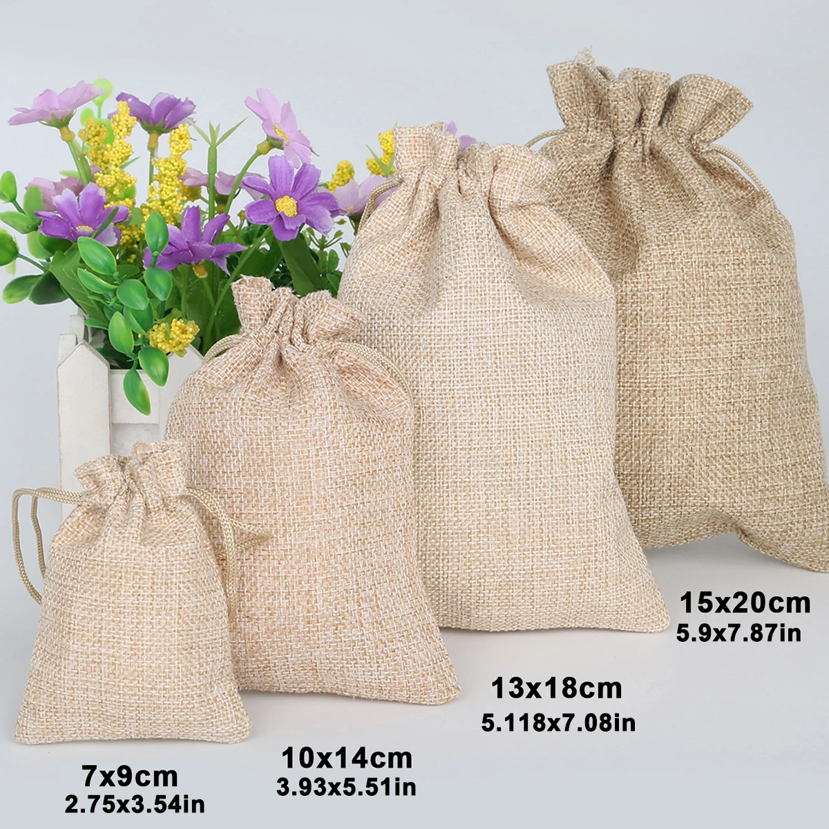 5/50 Pcs/Lot Cotton and Linen Drawstring Bags Christmas Party Gift Package Small Cotton Pouches Home Kitchen Organize Sacks