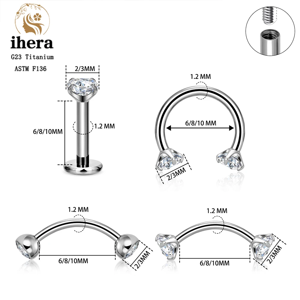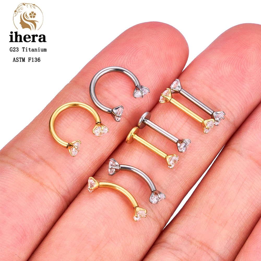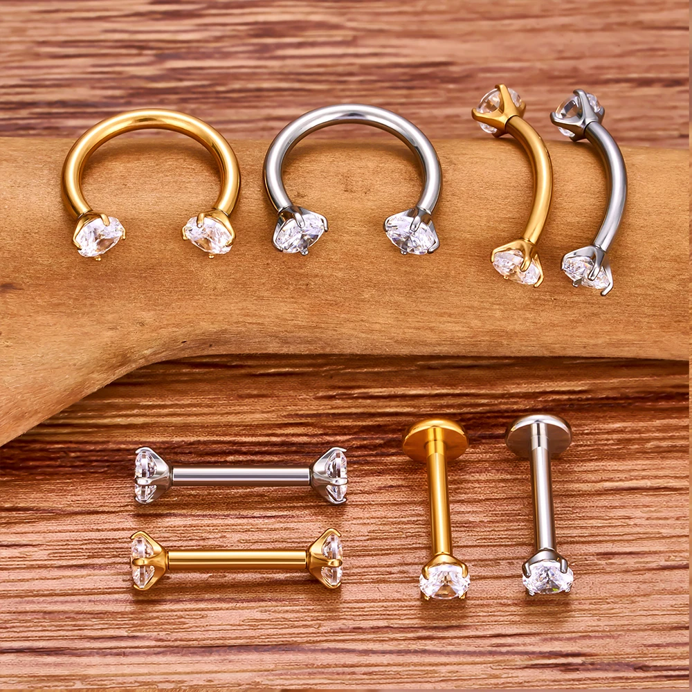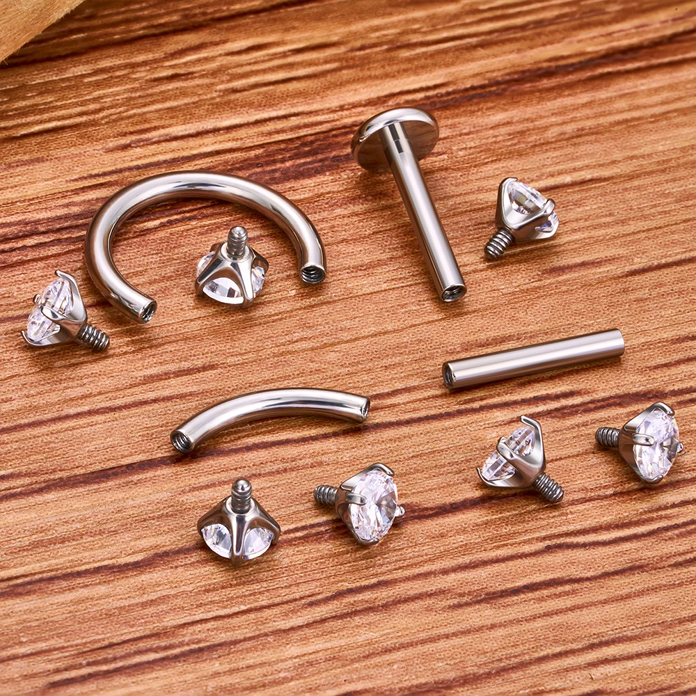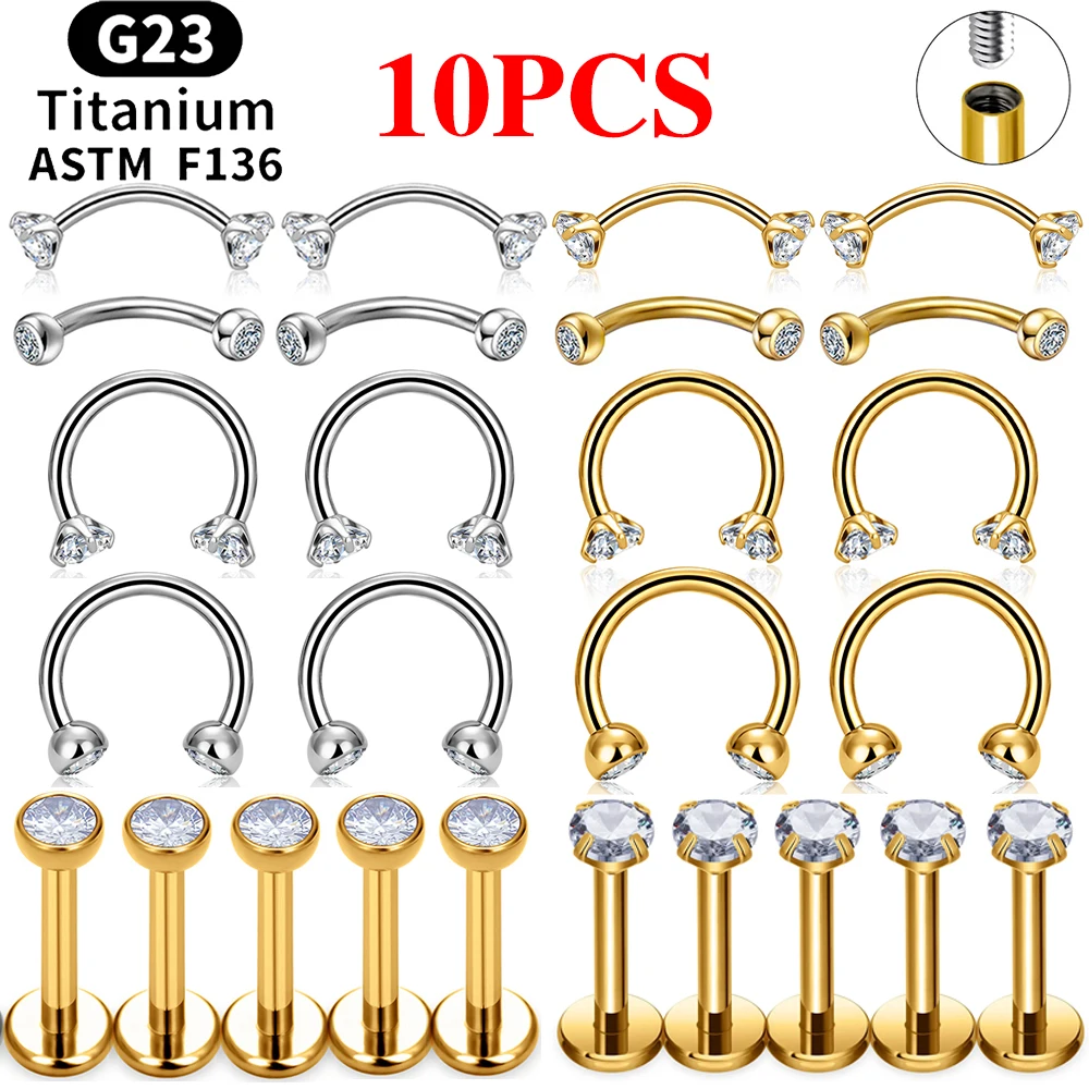 5/50PCS G23 Titanium Labret Lip Ring Internal Thread Septum Nose Rings CZ 16G Stud Earrings Tragus Eyebrow Piercing Body Jewelry