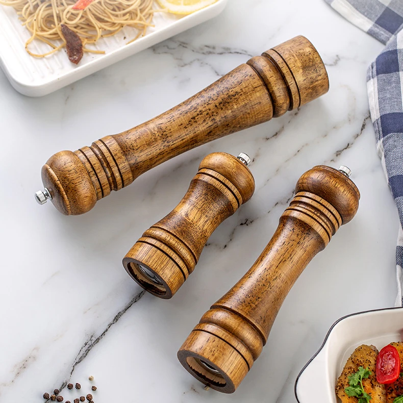 5/8/10 Inch Salt and Pepper Mills Solid Wood Spice Grain Grinder with Adjustable Ceramic Grinding Core Kitchen Tools Mills
